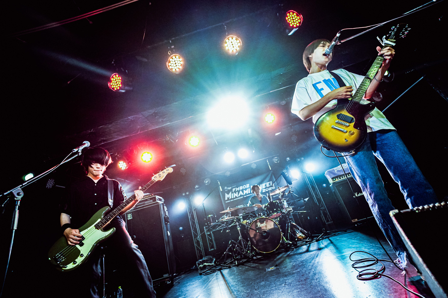 続いても、非常に関わりの深いバンドの元へ。「ポップスの解釈が広くて、歌詞に地元大阪のバンドならではの固有名詞が入っていて共感できる。めっちゃ推してます!」と太鼓判を押すのは、BIGCATの3番手に登場した、高槻出身の4人組ロックバンド・TRACK15だ。実はメンバーの高橋凜(Ba.Cho)がハタノの高校の同級生。「軽音楽部でコピーバンドをしてた時から知っていて、京都MOJOでのTRACK15の初ライブもチケットノルマで友達を連れて観に行ったら、まさかこうしてBIGCATに立つとは。これまで3回出た『ミナホ』は全て追っているし、今年「FM802 DJ」と「『ミナホ』のBIGCATに立つミュージシャン」として観れたのは、すごく感慨深いですね。『レディクレ』でも観たいな」と嬉しそうに顔をほころばせていた。