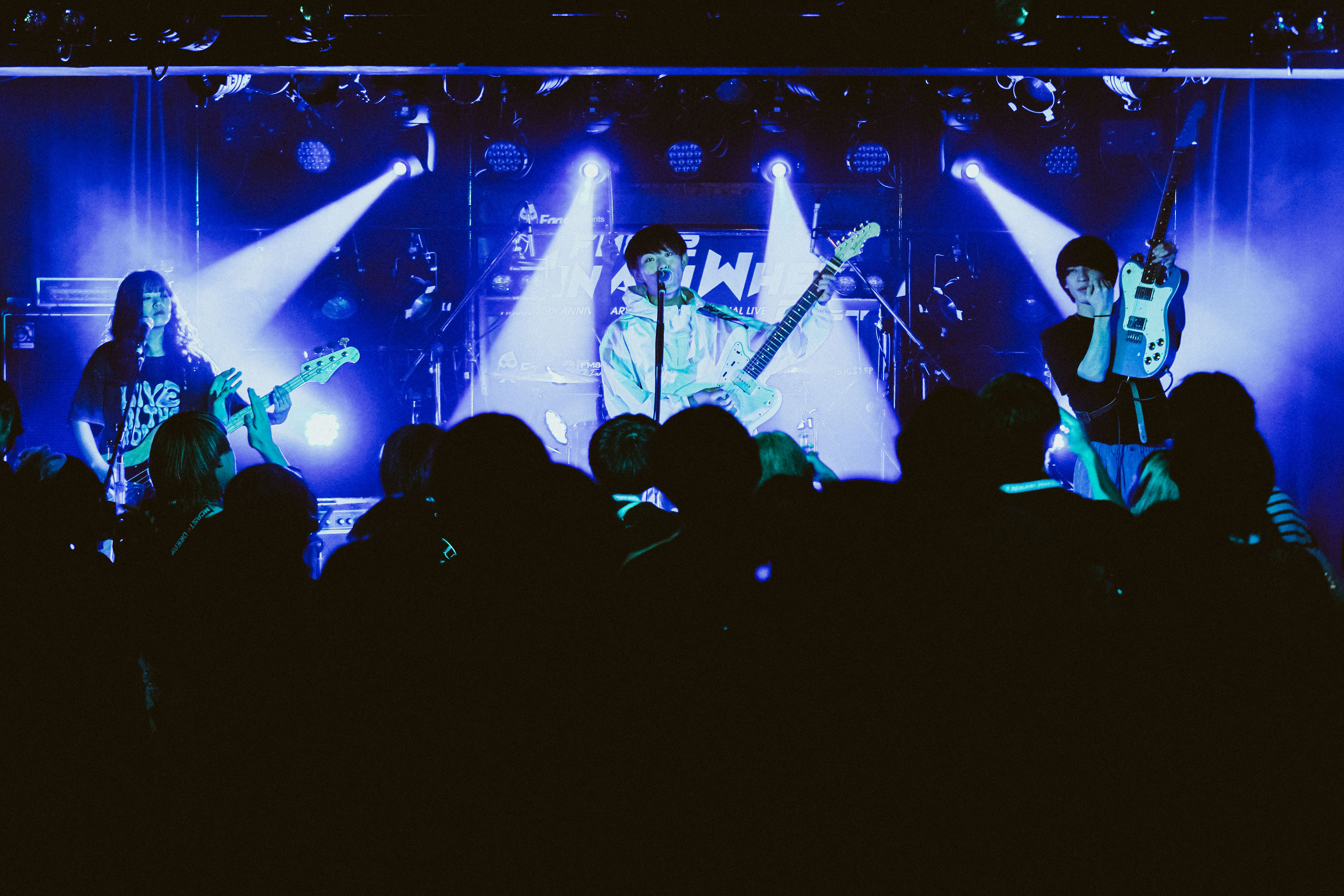 そして今年から新たな試みとして始まった「MINAMI WHEEL 2024 -New Age-」。関西の学生限定でオーディションを行い、100組の応募の中から音源審査を経て、6月の実演審査と、8月にBIGCATで行われた最終審査を勝ち抜いた3組が『ミナホ』出演権を獲得した。ハタノは一次審査からMCとして関わっていたため、彼らの歩みを間近で見ていたことになる。初日のNew Age枠のBEYONDに出演したのは、西宮発の4ピースバンド・幻想痛。