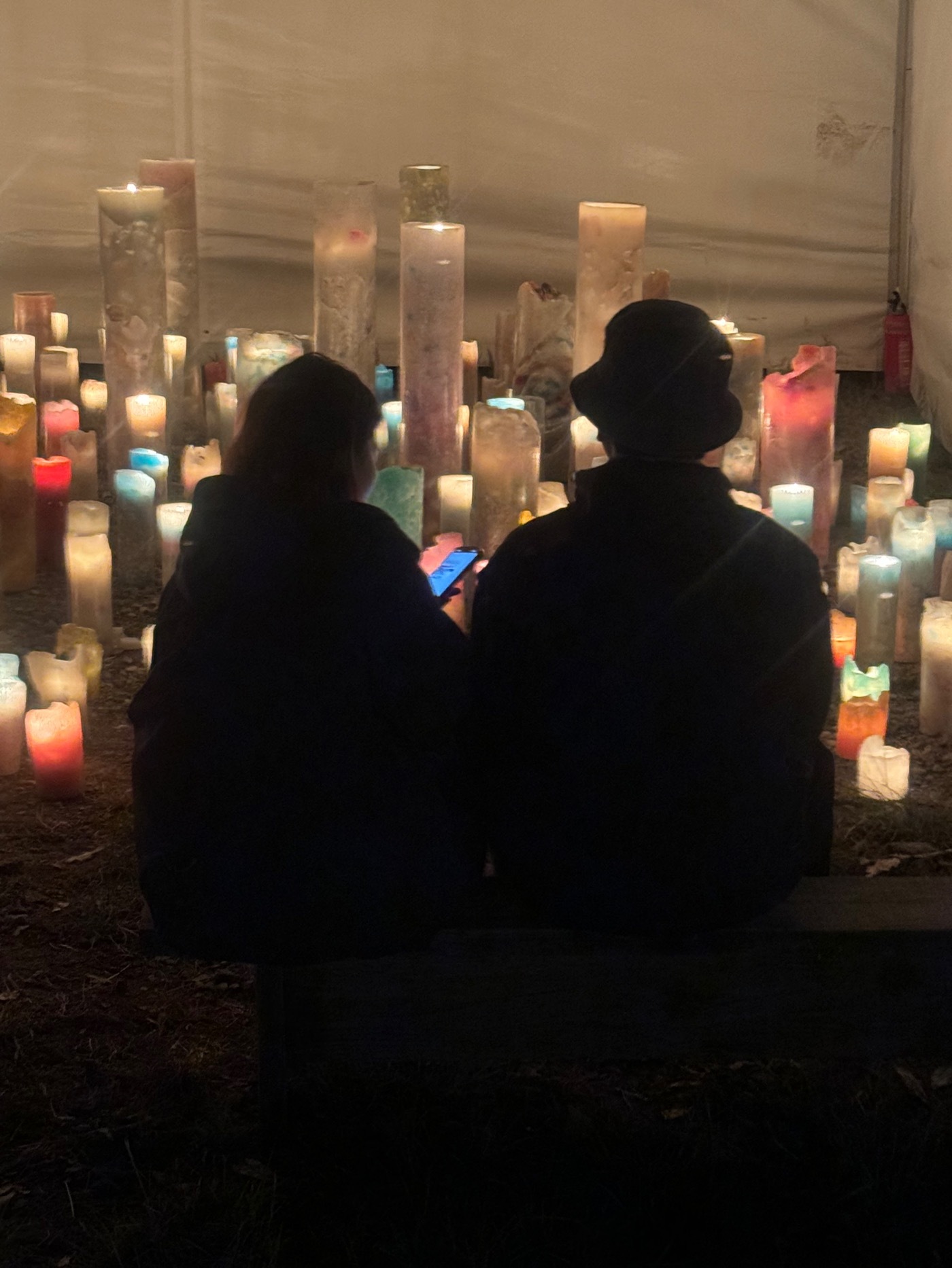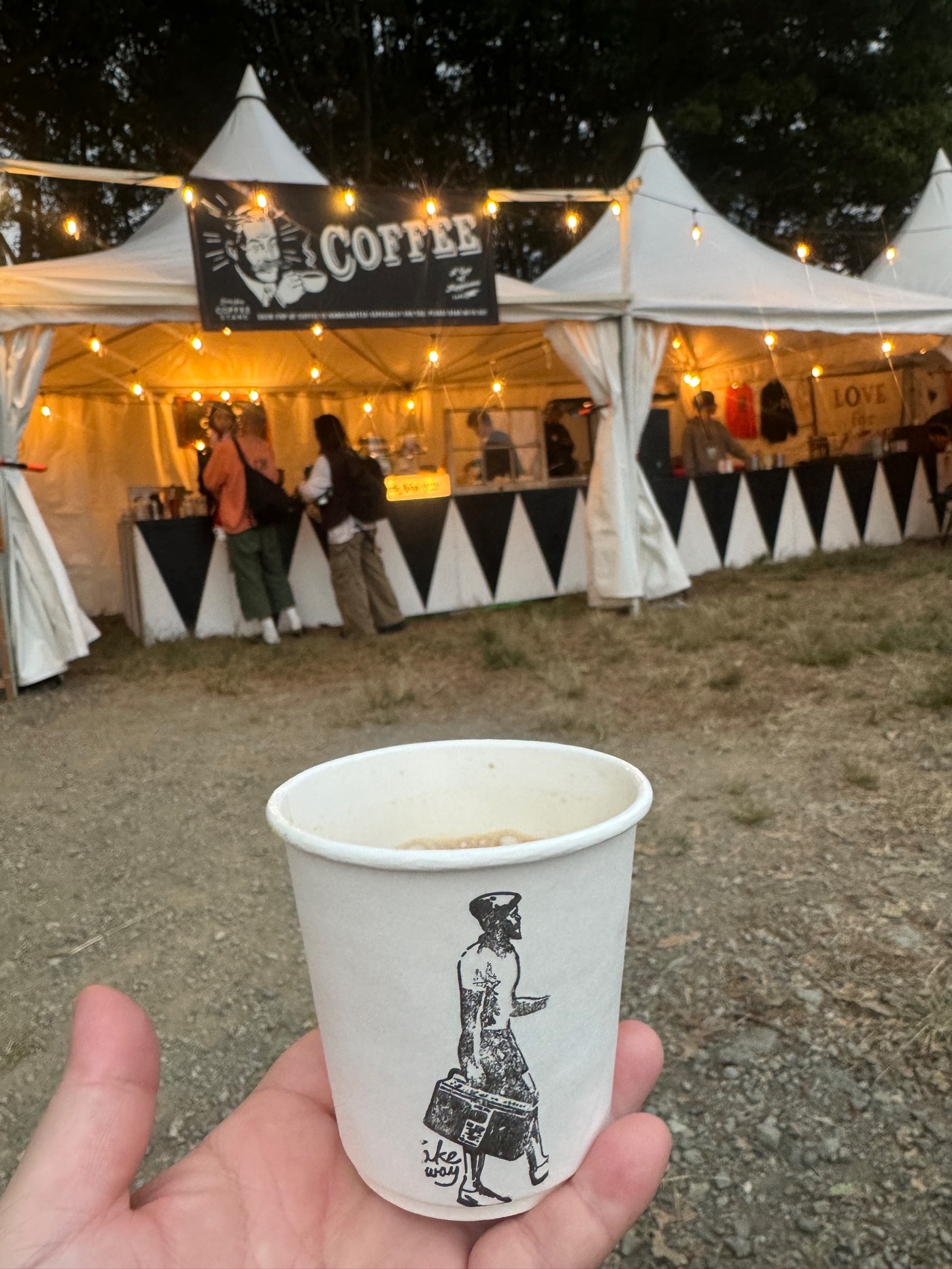 ふもとっぱらの一角に現れる「ピーターパン Café」は、コーヒーやお酒、ミルクなどのドリンクや、パンケーキ、焼き菓子などが販売されているので、シャトルバスを降りてからテントへ戻る前に毎晩立ち寄って小腹を満たすのに重宝。キャンドルアートを眺めながら温かい飲み物を手にほっと一息つく時間はとても贅沢で、よい眠りへの入口のような存在でした。