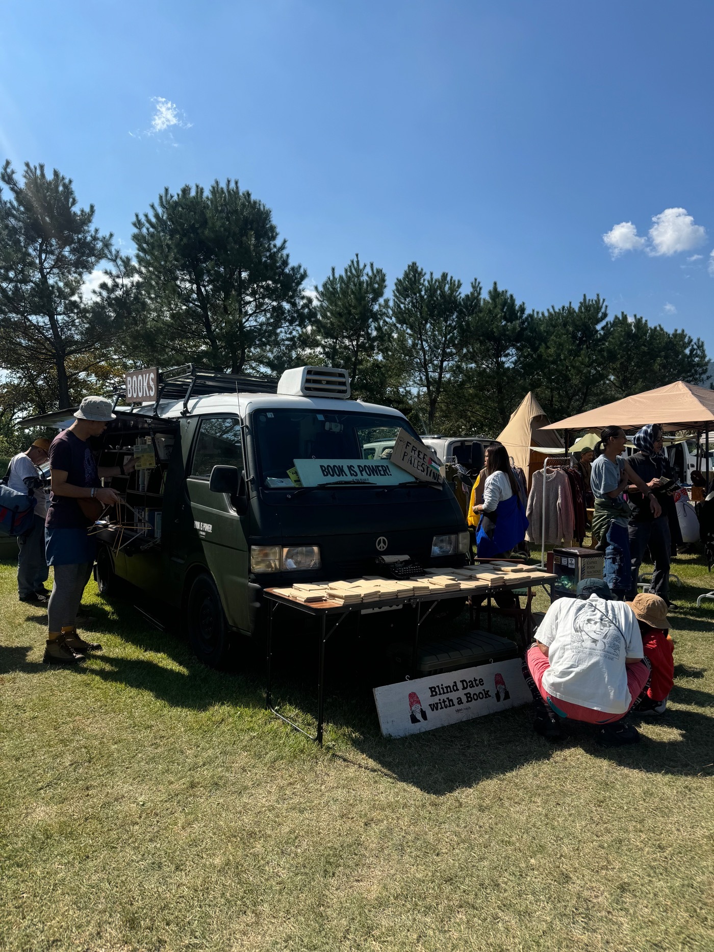 その中にいた、家族や親戚、友人と大勢で来ていたグループメンバーの中学3年生の女子の話を訊くことができました。0歳から『朝霧JAM』に参加しているという彼女は、未就学児と小学生の親戚と一緒にキッズランドで遊んでいるところでした。なぜこのフェスに参加し続けているのかと訊ねると、「音楽が好きだから。羊文学が目当てだけど、新しい音楽にも出逢える。それに友達じゃないけど毎回ここで会う子とも会えるし」と話してくれました。