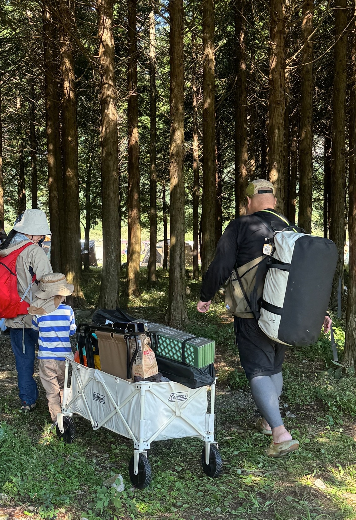 独身時代に仲間と参加していた頃は場内サイト一択でしたが、ファミリー参加するようになってからは、ふもとっぱらでのオートキャンプを利用するのが常となっていました。今回は、ふもとっぱらでのオートキャンプの取り扱いがなくなったので、「場外・パーク&キャンプ場」と悩んだ末、「ふもとっぱらパーク&キャンプ場」を初利用することに。日頃オートキャンプしかしないので不安でしたが、駐車場所近くに気に入った場所が見つかり、そこにテントを張ることができたので、ほぼオートキャンプのような状態で移動や運搬も楽にできました。