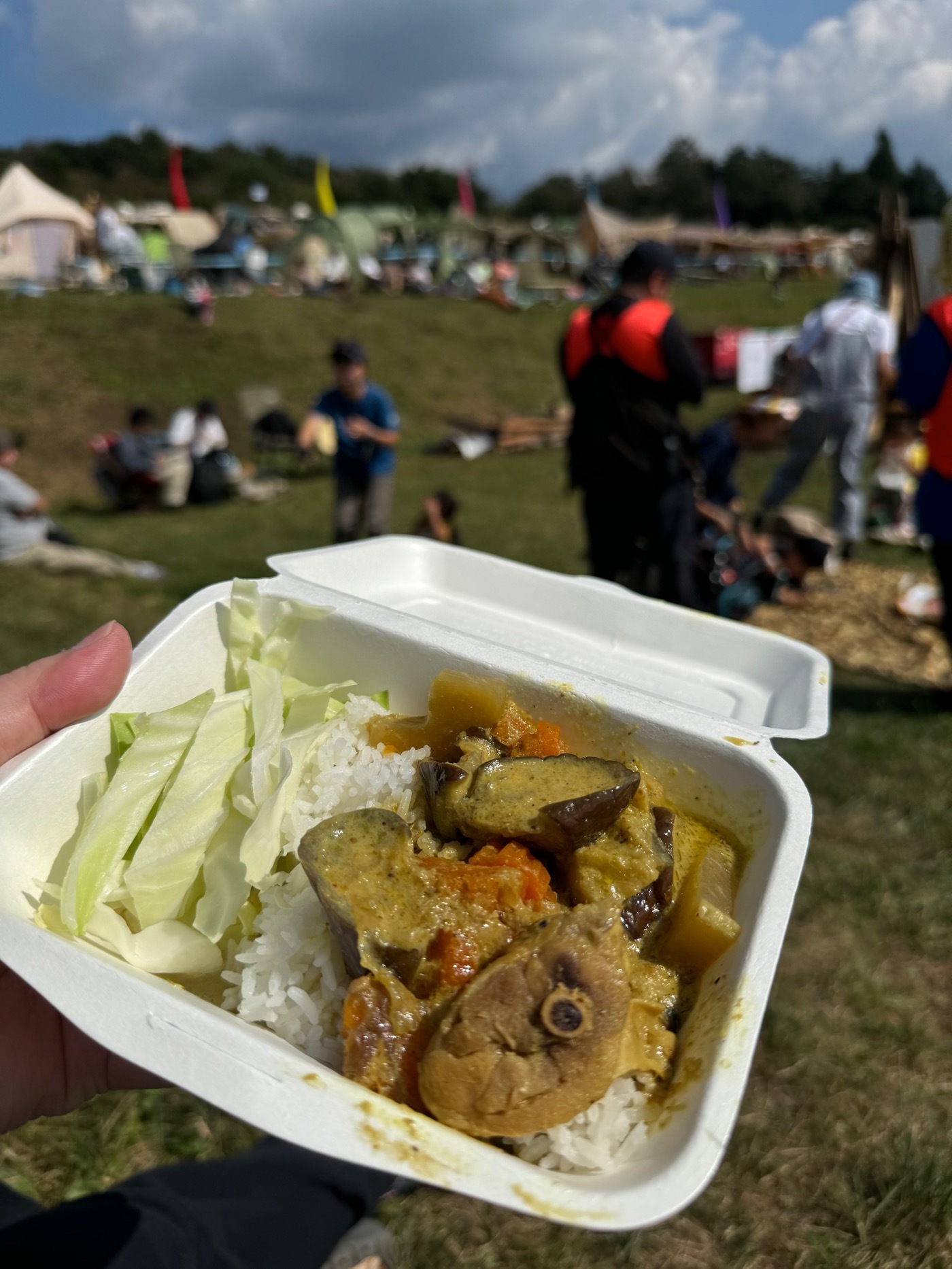 毎回食べてみたいと思いながらも行列の長さに負けてきましたが、今回は意を決して並んで購入。グリーンカレーライスは半端ない辛さ! しかし辛いだけではなく味がとても良く、辛いのが苦手な筆者も付け合わせキャベツのナイスアシストにより完食。なぜもっと早く並ばなかったのかと悔やむほど絶品でした。