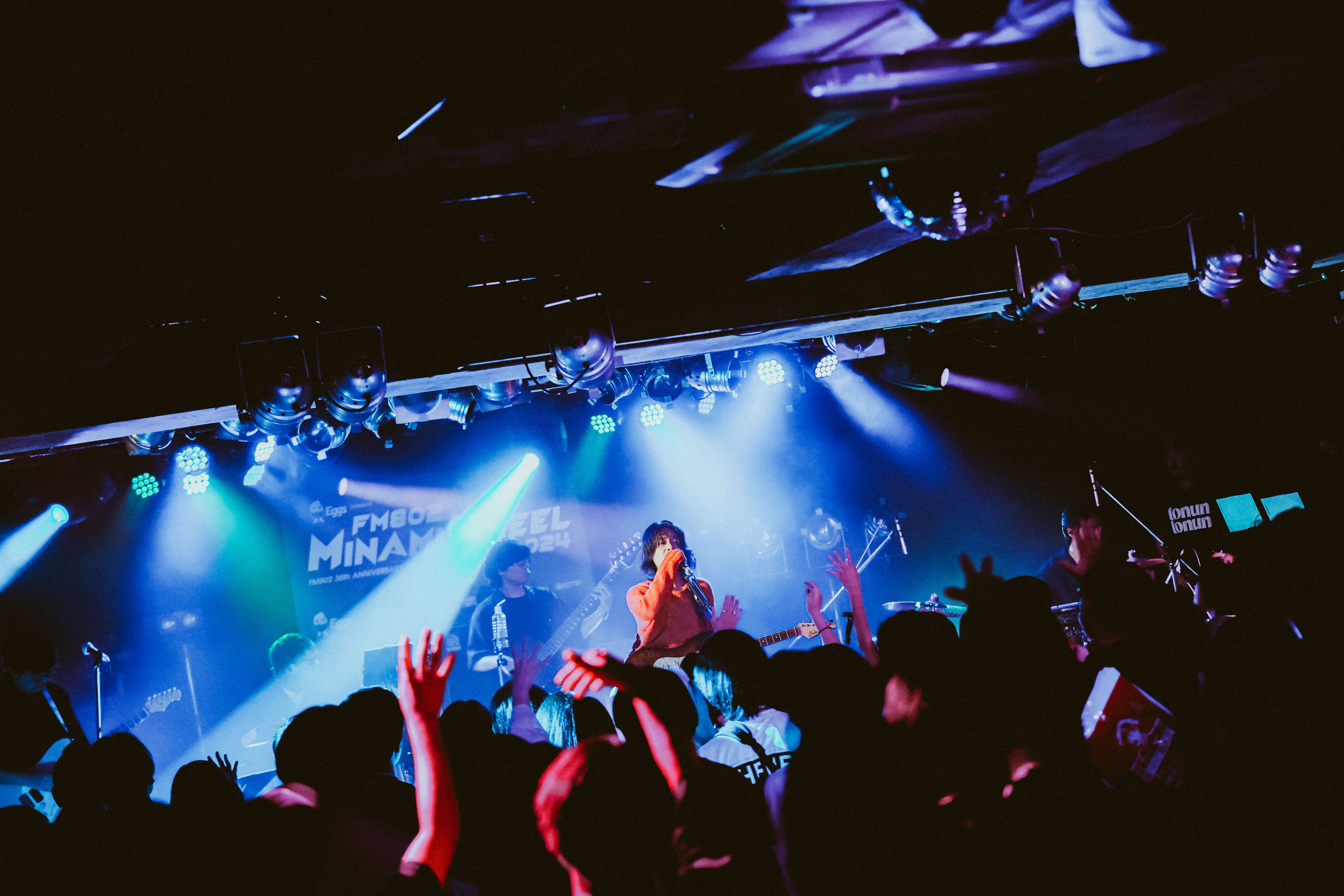 Re:nameは「prettyfine :)」が2023年3月度邦楽ヘビーローテーションになるなど、802とのストーリーが深いバンド。「彼らは『ミナホ』4年目で、どんどんライブハウスのキャパも大きくなって、今年はSUNHALLでどんなライブを見せてくれるか楽しみで、絶対拝見したいと思っていました。英詞と日本語詞が混ざる中で、縦長のSUNHALLの後方まで轟くような、滾るロックをガンとかき鳴らしてくれて。若い子も初めての方も巻き込むパワーで、改めてロックに対する初期衝動を感じましたね。入った瞬間から「うわ熱狂!」とわかるほど熱く盛り上がっていて圧倒されました。さらに大きいステージが予感できる、パワフルでダイナミックな景色を見せてくれました」と想いひとしおだった。