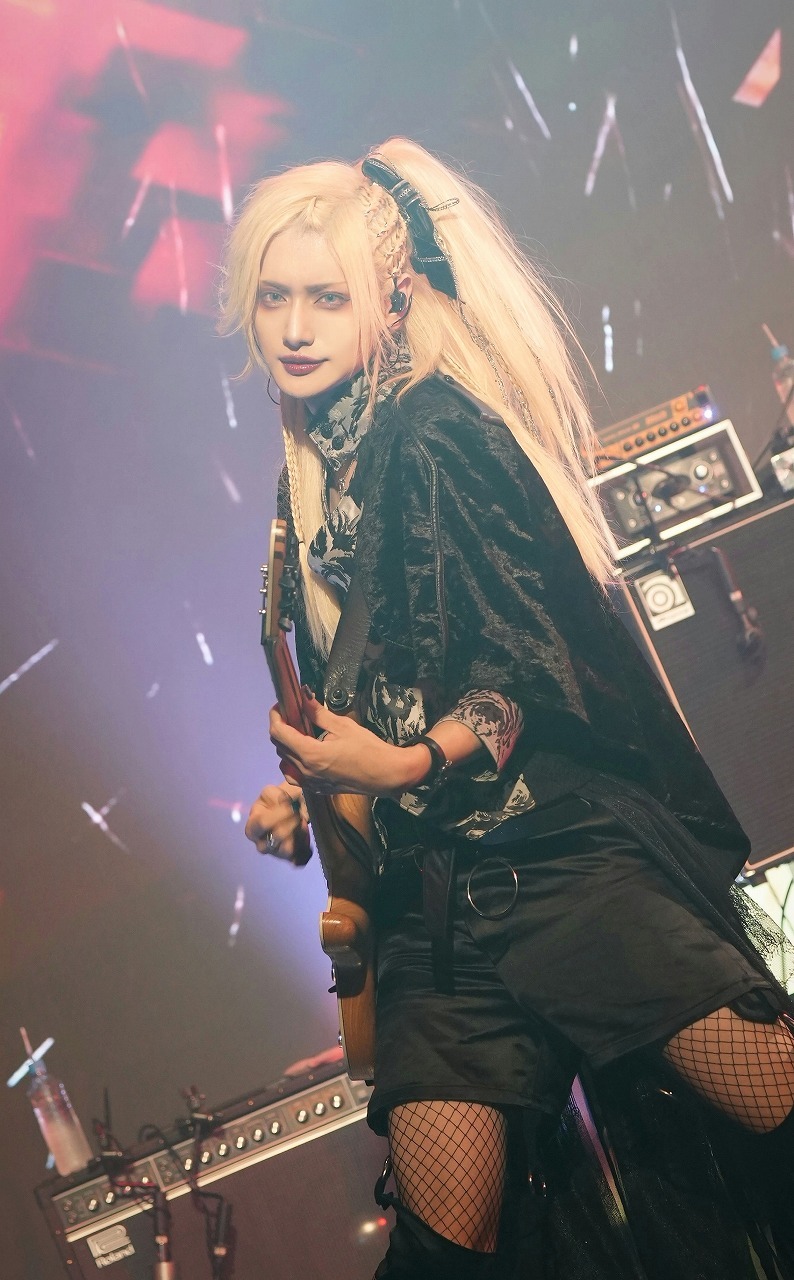 キラーチューンを畳みかけた序盤を経て、中盤には歌を活かしたセクションが設けられていた。その口火を切った「Q」は、儚くも美しさを増す形で再構築されたバラード。楽曲の奥行きを存分に味わわせる秀逸なプレイで会場中を陶酔させ、そこへさらに心を揺さぶるように投下された「三日月がただ遠い」は、諒平がギターを鳴らして素敵に冒頭を演出し、夜暗の怪しげな雰囲気に嘆きの咆哮を強調させながら激情で満たしていった。そして、新曲の中からこの日初披露となった「Morphine」。先に披露した「Q」の中にも“モルヒネ”という描写が登場するが、「Morphine」はAzavanaの、ひいては遼が描く世界の中で堪能できたことも興味深いワンシーンだった。
