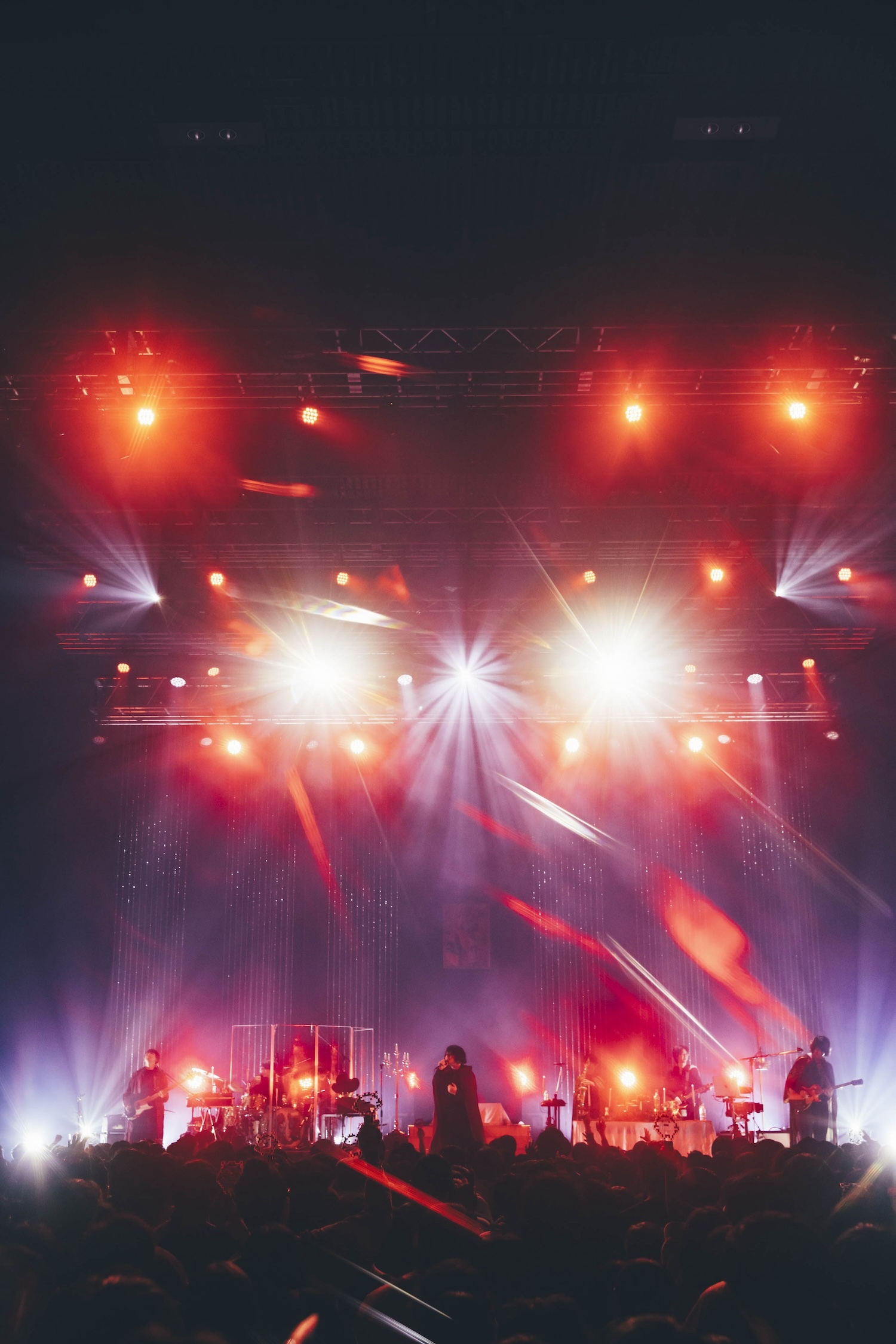 オルタナティヴR&B的な音の処理も散見された「ブギーマン」での、愛を交わすとバケモノが目を覚まし、常に恐怖に苛まれる主人公の孤独は演奏の献身で研ぎ澄まされていた。さらに終盤の3曲は1部の物語性に満ちた連なりと同じく、強烈な擬似体験をさせてくれたのだ。調律がずれていくような不安なピアノのイントロからすでに悲しいような切ないような気持ちが押し寄せる「ファンタジスト」。大事な存在が変容してしまうなら自分も一緒に破滅すると歌うこの曲での雄貴の声は、会場の隅々までその意思を伝えていた。楽しくシンガロングしていても、楽しさを上回るもっと強い感情に包まれていたように思う。そして大久保の長めのサックスパートをイントロに加えた「オフィーリア」が、短い曲であるが故にむしろここまでの流れ、もしくはバンドが音楽という芸術を作るのか?の答えのように強い印象を残した。1部が“仲間が集まって音楽が始まる”イメージだとしたら、2部は“音楽を作り続けていく”イメージに感じられた。2部のラストは今のGalileo Galileiのバンドアンサンブルへの貪欲さを具現化した重厚な「ヴァルハラ」。全員がラウドな演奏をすることを心底楽しんでいる姿は更新し続けるバンドの今でもあったのだ。