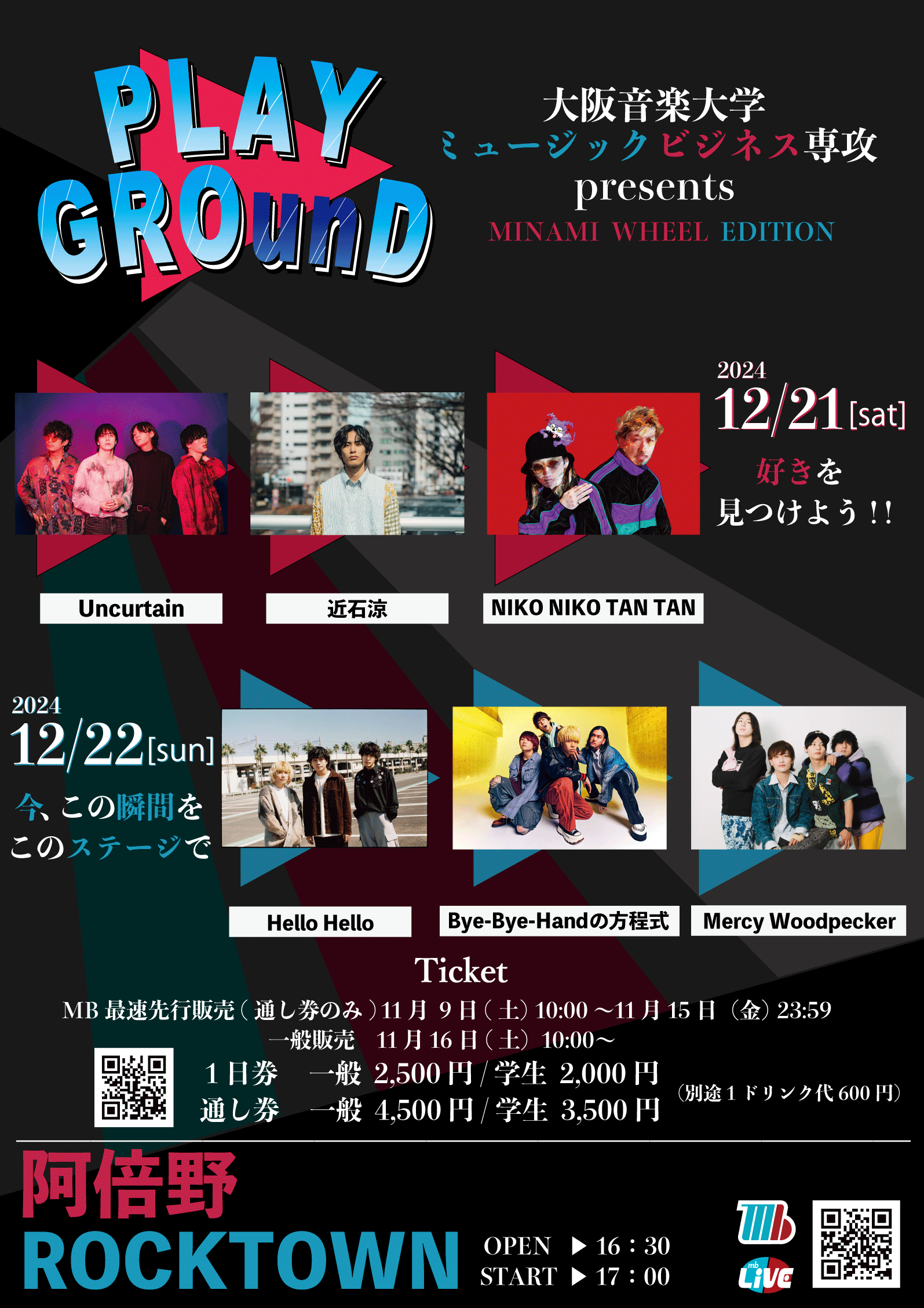 12月21日(土)、12月22日(日)に大阪・あべのROCKTOWNにて開催される『大阪音楽大学 ミュージックビジネス専攻 presents “PLAY GROunD” -MINAMI WHEEL EDITION-』の出演者が発表された。