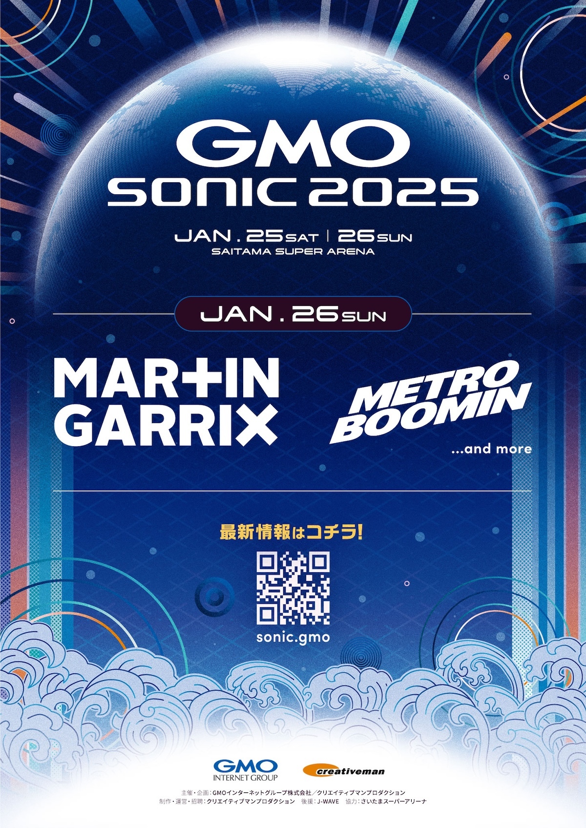 GMOインターネットグループと株式会社クリエイティブマンプロダクションが、2025年1月25日(土)・26日(日)にさいたまスーパーアリーナにて開催する、国内最大規模のダンスミュージックフェスティバル『GMO SONIC 2025』の出演アーティスト第2弾を発表した。