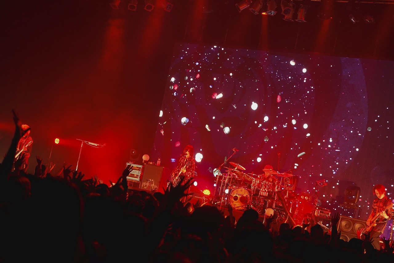春ツアーでもライブ本編ではアルバムの収録曲たちが全て披露されていたのだが、今回のツアーでもその部分はしっかりと踏襲。有村竜太朗がギター&ボーカルとしての存在感を強く発揮した「no rest for the wicked」、ベーシスト・長谷川正の刻むベースラインが曲全体を牽引していった「ざわめき」や、ドラマー・佐藤ケンケンが作詞作曲を手掛けているアンニュイなトーンの「ゆうえん」、ギタリスト・ナカヤマアキラが通常のモニターシステムではなくヘッドフォンを用いてのより繊細かつ完成度の高いギタープレイを聴かせてくれた「宵闇」などをはじめとして、彼ら4人はこの場で『Plastic Tree』の世界をいっそう深い次元で体現していくことになったと言っていいだろう。