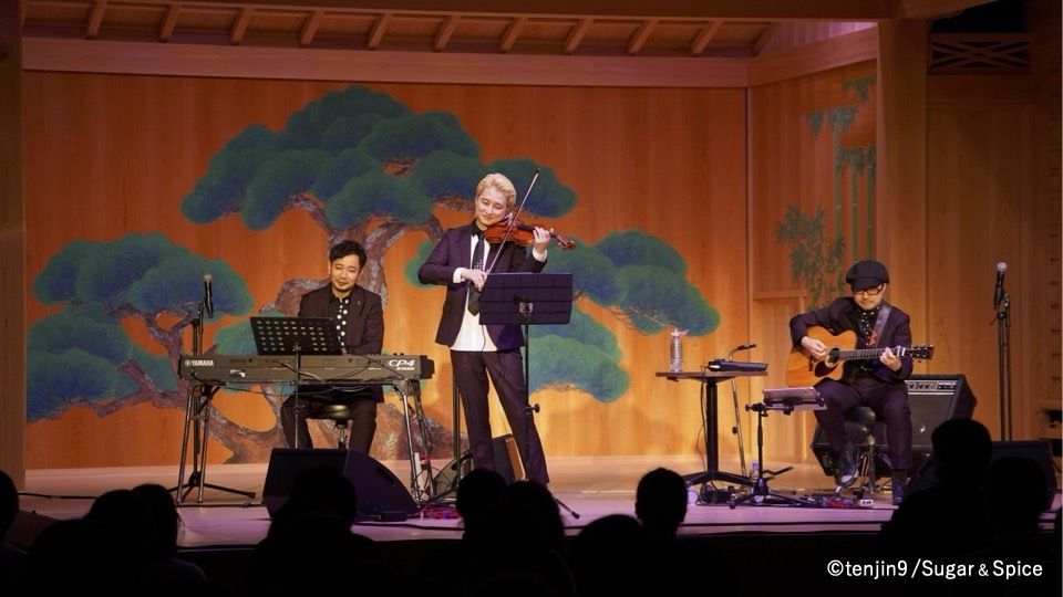 「ポップスを表現する唯一無二のバイオリニスト」と称されるNAOTOが、2023年にギターの石成正人、キーボードの松本圭司とともに結成したユニット、Sugar&Spice。これまでNAOTOとテレビ番組やラジオ番組で数々のコラボレーションを実施してきた、RSK 山陽放送の1階に常設された能学堂で行った本格的なライブコンサートがキッカケで結成された。3人が奏でる極上の音楽とハイテクニックな演奏。能舞台で繰り広げられる和×洋の芳醇な響きと至極の時間は、まさに伝統と創造のコラボレーション。演奏の合間のトークタイムも、ライブの見どころ聴きどころのひとつ。
