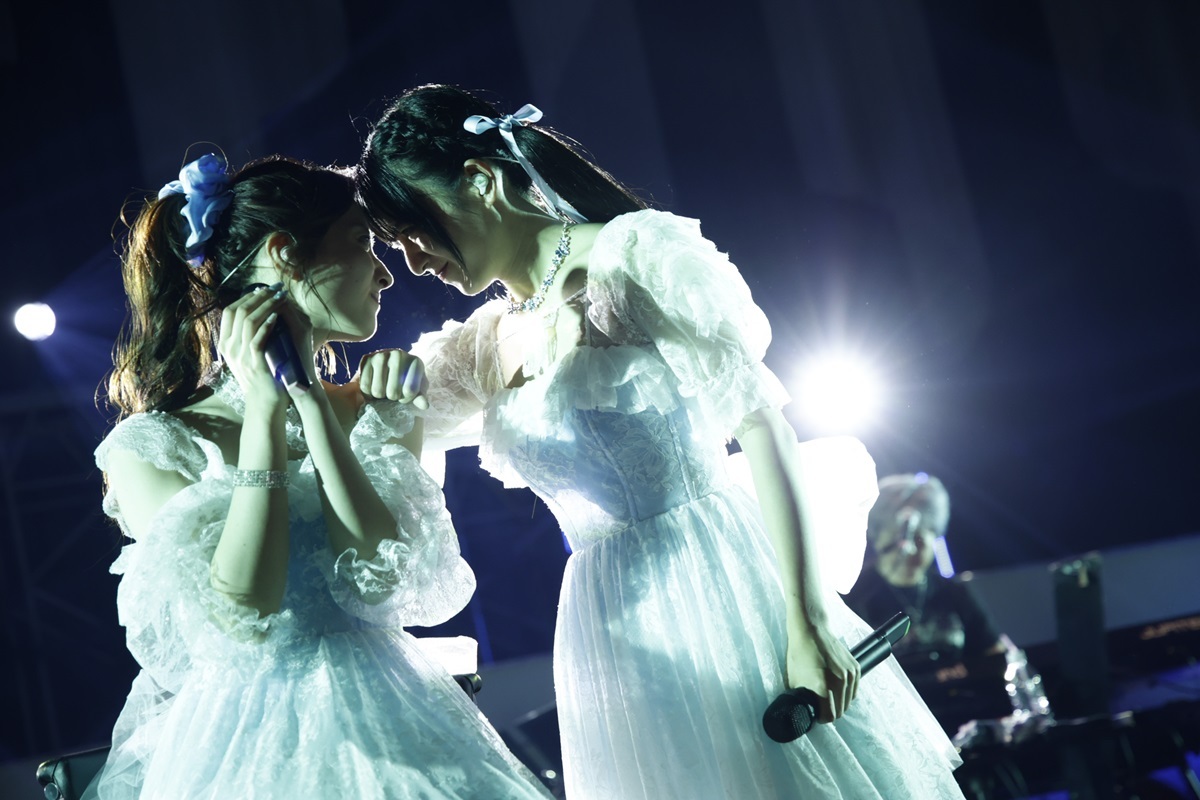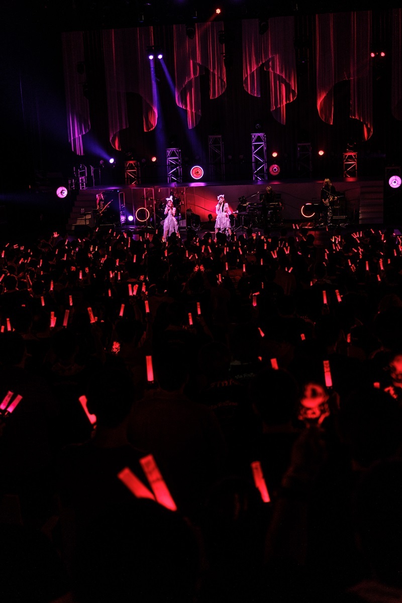 ライブでの人気曲「仮面ジュブナイル」、そして「Prism」からは仮面を外してのパフォーマンス、どこかこれまでの軌跡をたどるような構成なのだと意図に築きつつ、二人の歌唱に聴き惚れる。本当に二人の歌声が心地よい。