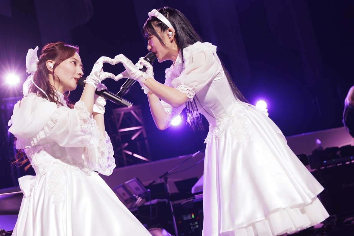 衣装もチャーミングなものに着替えての後半戦、クララはうさぎ、カレンは猫と自身たちを象徴する動物の耳がついたカチューシャも可愛く決まっている。かわいい!という声援が飛ぶ空気を更にブーストするかのように「ヒトリゴト」「CheerS」、そしてスケール感を広げて「アリシア」「ALIVE」とキラーチューンをダイナミックに展開していく。