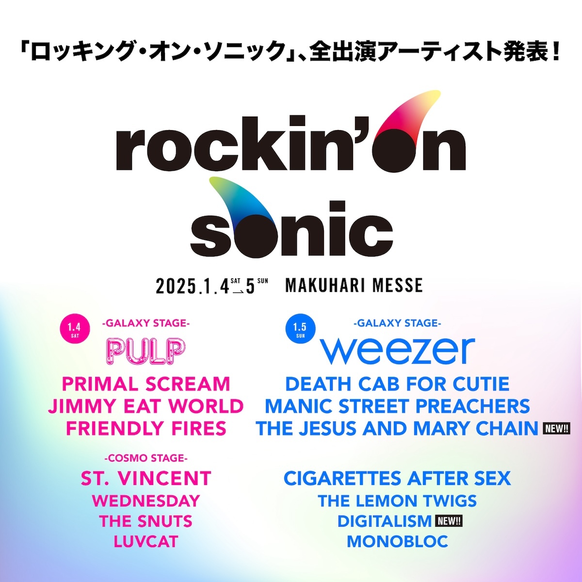 2025年1月4日(土)・5日(日)に幕張メッセ国際展示場で開催される『rockin’on sonic』の最終追加アーティストが発表された。