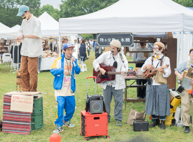 昨年に引き続き、「太陽の塔」のふもとの万博記念公園にて開催される『関西蚤の市』では、会場のあちこちであっと驚き、時にクスッと笑ってしまうようなパフォーマンスが行われる。なかでも東京開催時に好評だった来場者参加企画である「いきなりラップバトル」が関西初登場。バトルの相手はラッパー・マチ―デフ。想いをビートに乗せて言ってみよう。