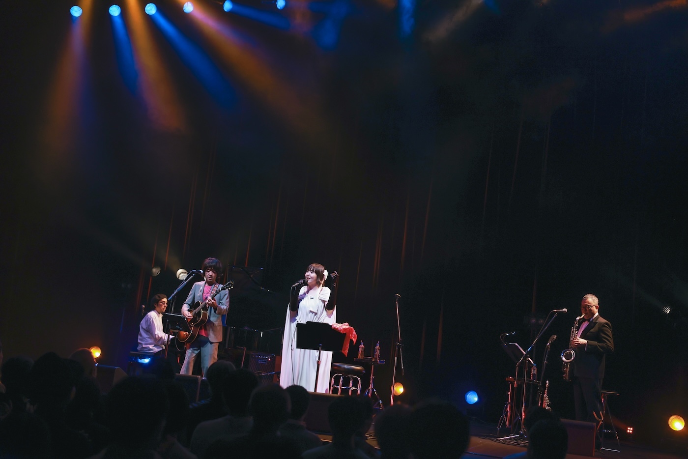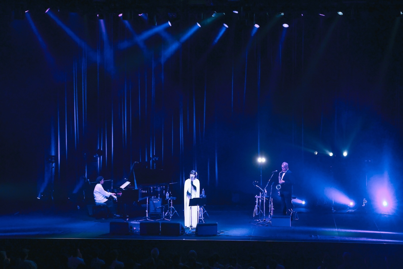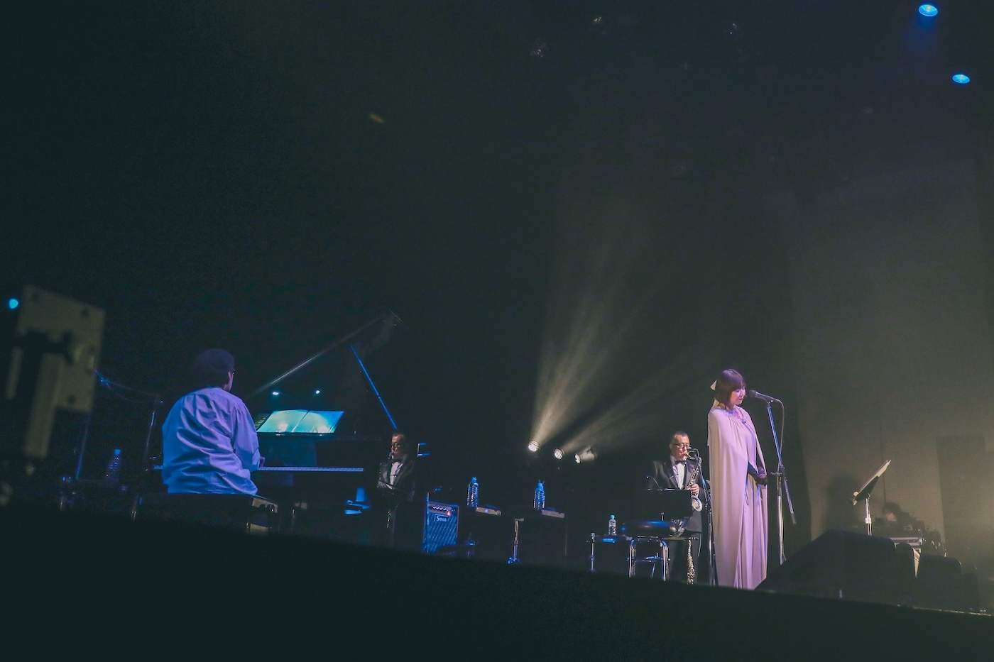 バンドの編成は土岐に加え、ホーン・田中邦和、ピアノ・ハタヤテツヤのみというミニマムなもの。少ない音数ながら一音一音が研ぎ澄まされた「My Favorite Things」のイントロが奏でられる中、歩みでた土岐に拍手が送られる。少しエアリーな質感のあるメロウな歌声を、メロディラインの上にそっと置いていくような歌唱。しっとりとした大人の魅力の中にどこか可憐さも入り混じる、唯一無二の歌声だ。続く「NEON FISH」では跳ね気味の歌とピアノでアクセントを付け、リズム楽器不在ながら自在にグルーヴを操っていく。