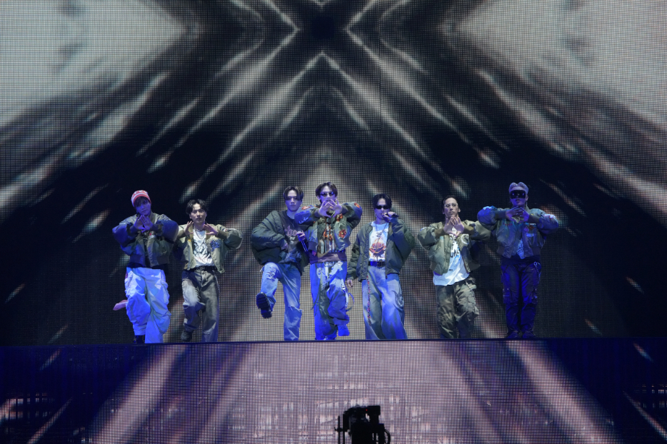 ライブは凛々しさを感じさせる衣装を纏った7人が壮大な物語の世界へと導く印象的なオープニング映像で開幕。ステージに吊られたゴンドラに乗って巨大なLEDモニターの中央に現れた7人の姿に会場からは大歓声が上がった。1曲目から最新アルバムのリード曲「DEVELOP」を披露すると、圧倒的な特効演出とパフォーマンスに会場の熱気は急上昇。