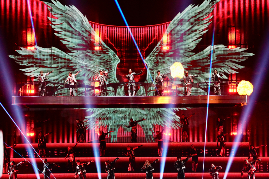 終盤では全身赤い衣装に身を包み「BLAZE」を披露。闘志と熱い想いを歌詞に落とし込んだ楽曲で、ラストまで疾走感のあるパフォーマンスを見せつけるステージだった。最後は、メンバーが登場した時と同じく一列に並んだかと思えば、全員ステージから仰向けに落ちるという衝撃的な演出で幕を閉じた。