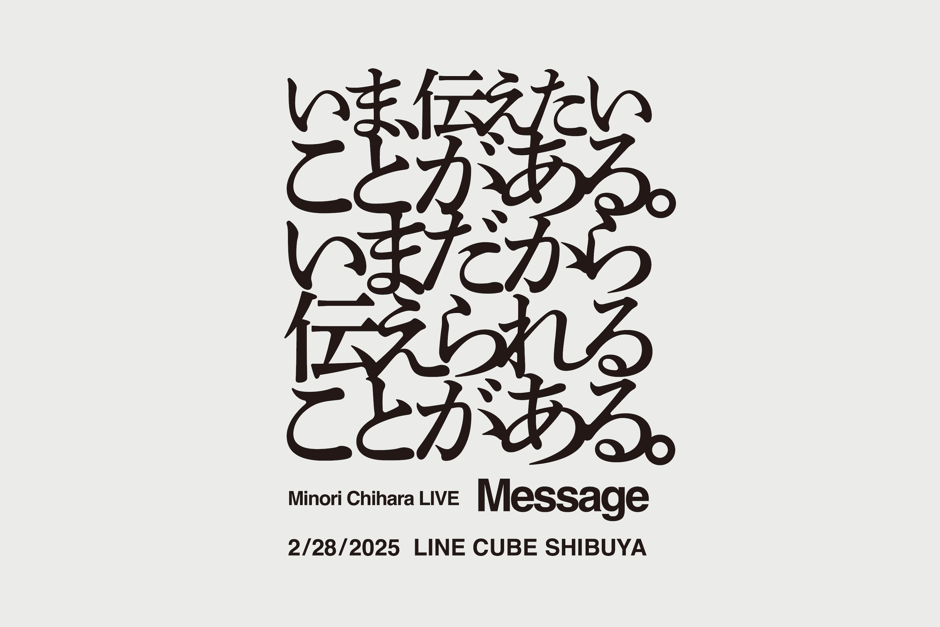 2025年2月28日に、声優アーティストの茅原実里がLINE CUBE SHIBUYA(渋谷公会堂)で『Minori Chihara LIVE “Message”』を開催することが発表された。