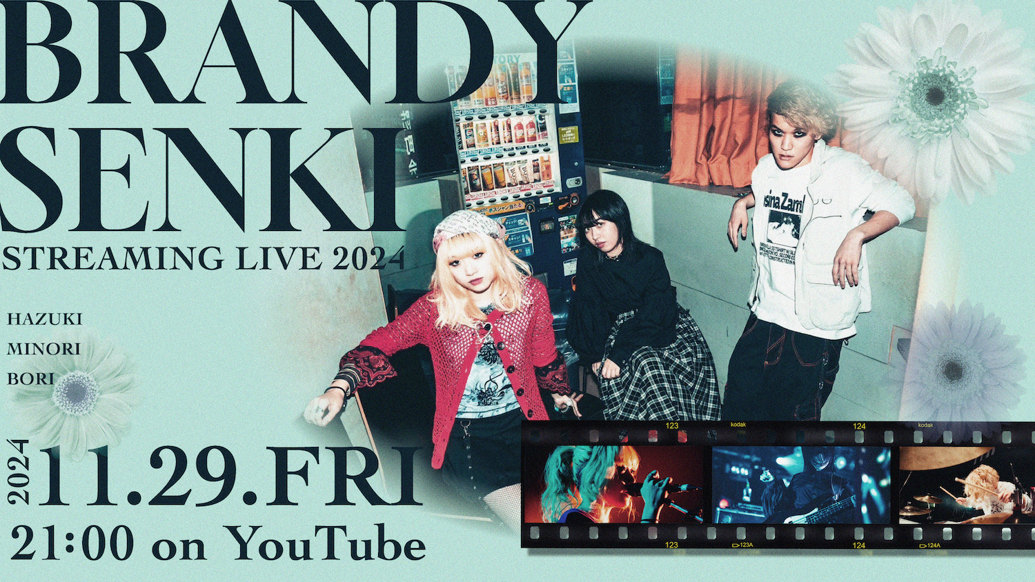 蓮月(Gt, Vo)、みのり(Ba, Cho)、ボリ(Dr)からなる大阪発スリーピースロックバンド・ブランデー戦記が、新曲「27:00」(読み:にじゅうしちじ)のリリースを記念して初のYouTube配信ライブを開催することが決定した。