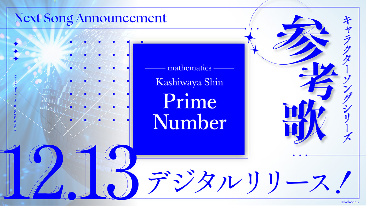 そして『補講男子』キャラソンシリーズ”参考歌”4弾は、貴志礼世と同ユニットに所属するWITHPER・数学担当の柏谷信 (CV.豊島聖人) が歌唱する「Prime Number」。公開は12月13日(金)を予定しているとのこと。『補講男子』に注目していきたい。