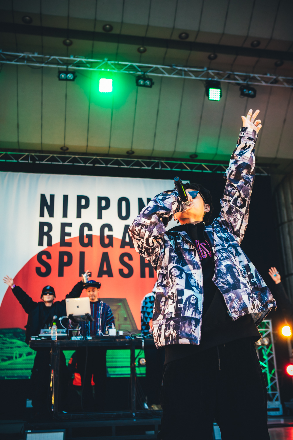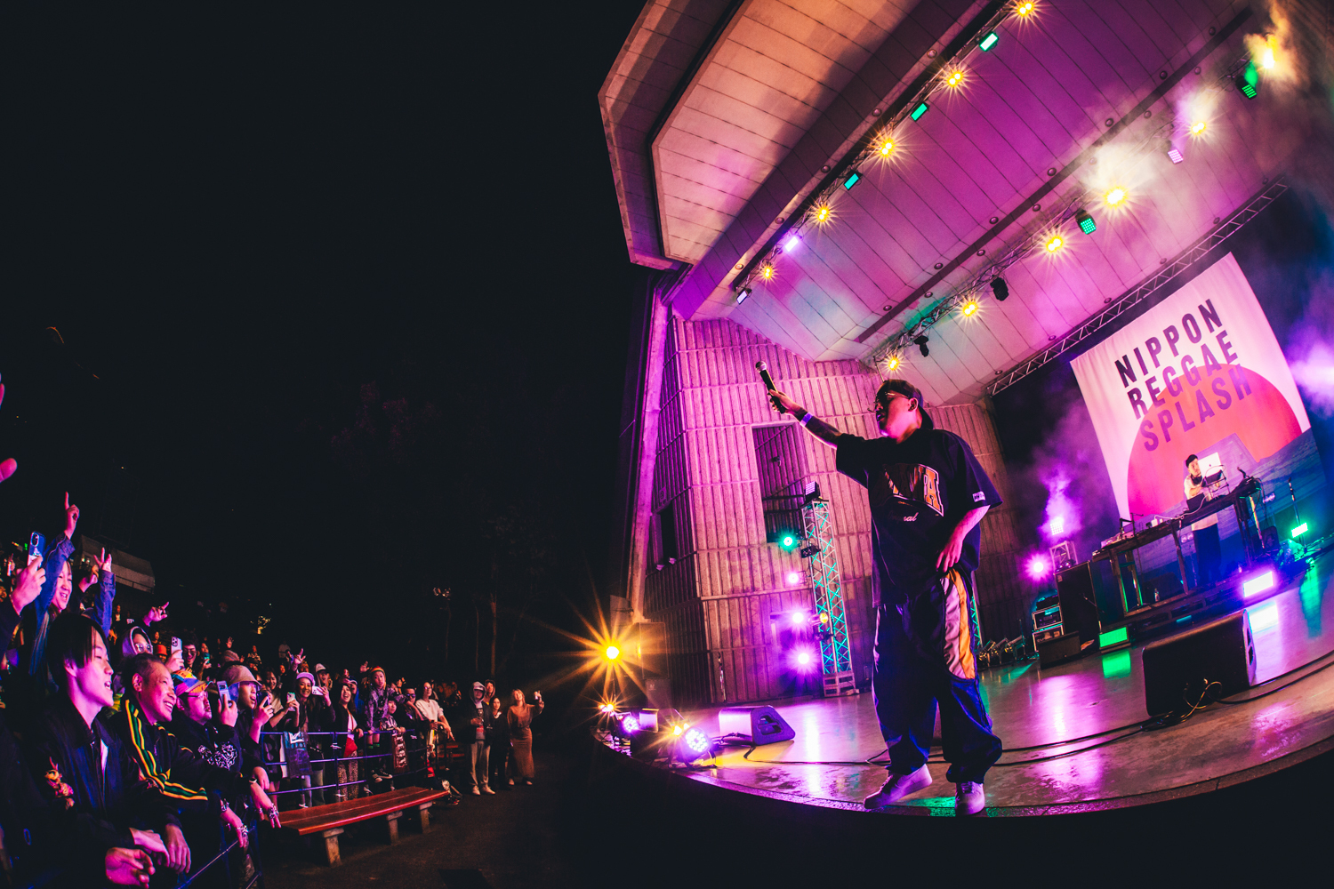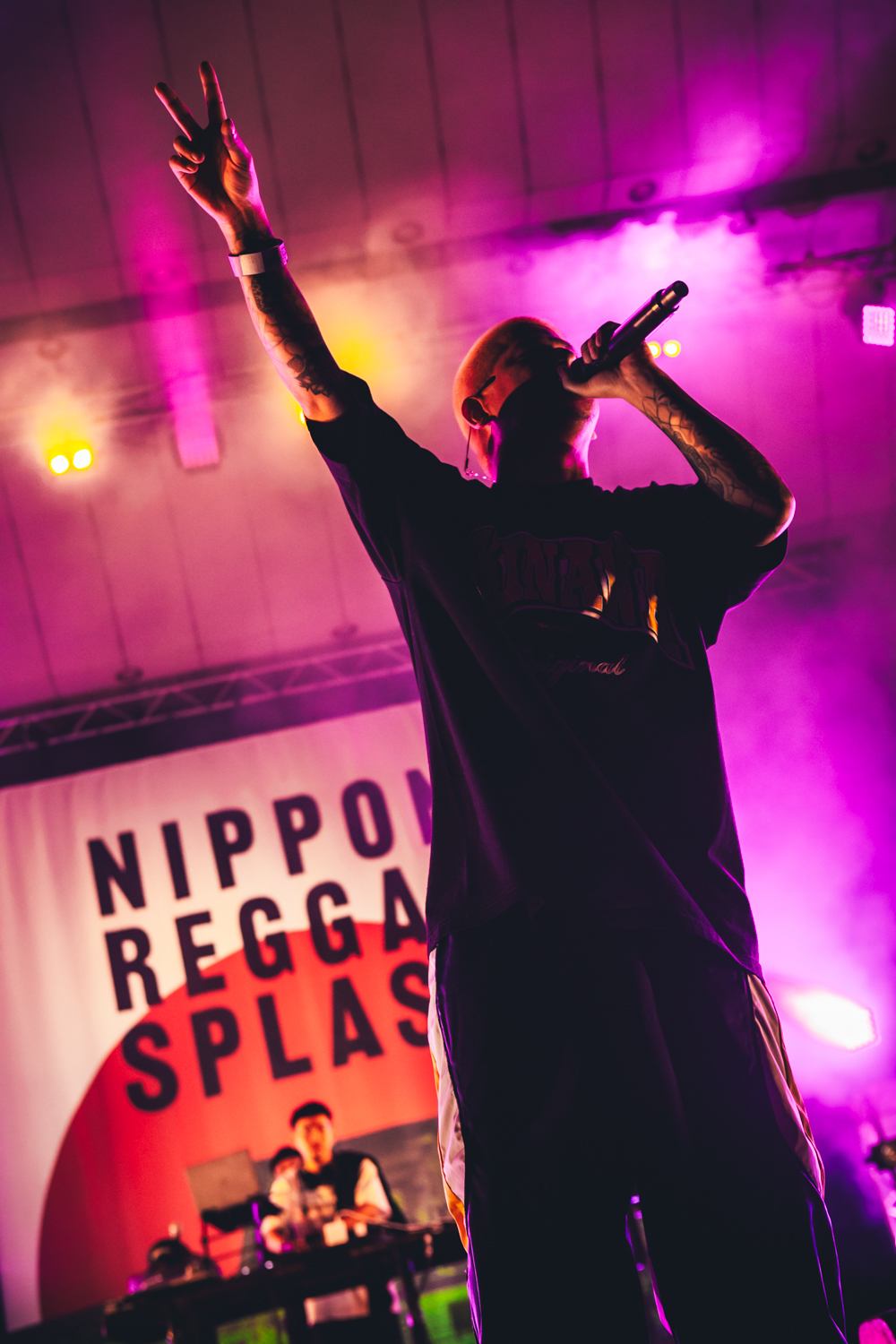 ジャケットとシャツを脱いでメッシュシャツ、通称アミシャツを露わにしながら「アミシャツ」を歌ったJ-REXXX。後方にいるセレクターもアミシャツを着ているのが判明した後、「もしかしたら着てるのかな? 脱いでみなよ」と言われた撮影スタッフが裾をめくると、現れたのはアミシャツ! 事前に仕込まれていた細かなネタが観客を大爆笑させていた。「この会場でのレゲエ、ダンスホールのイベントは、これで最後らしいです」と、『SOUL REBEL』『さんピンCAMP』など、様々な伝説的イベントが開催されてきた日比谷野外大音楽堂が立て替えられることへの寂しさを言葉に滲ませる場面もあったが、「またいろんな形で、新しい場所で『NIPPON REGGAE SPLASH』やると思うんで、遊びに来てください!」という力強い言葉が観客の喝采を浴びた。