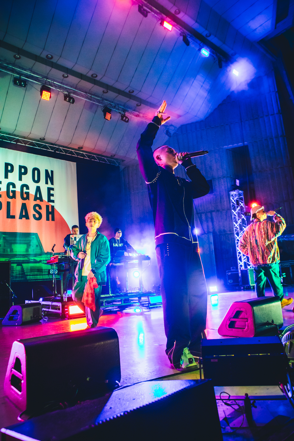 ジャマイカを拠点としているレーベル・MEDZと所属アーティスト・ZENDAMAN、Jr.Santa、SOMAJIの共演は、若手のフレッシュな息吹を感じさせてくれた。「Do my Thing」「Bed room belly」がまずは披露されたが、セレクターがプレイするリディムに対して3人が各々のスタイルでアプローチするのがスリリング極まりない。「エーヨー(ZENDAMAN, SOMAJI)」「Wipe Out(ZENDAMAN, Jr.Santa)」――歌声のコンビネーションを変化させた2曲を経て、「レゲエはレベルミュージックだから、この音をやつらに止めることはできない。みんな、まだまだ行けるか?」と観客に問いかけていたZENDAMAN。反骨心を滲ませる彼の歌声が客席の熱気を上昇させていくのも痛快だった。日が暮れて、鮮やかな色調のライティングがステージを包み始めた頃、ベーシストのプレイも加わって一際厚みを増したサウンド。「Liquid(ZENDAMAN)」を皮切りに、飛び跳ねながら盛り上がる観客が続出した。「Stepz(Jr.Santa)」「Mad ants(SOMAJI)」「DIWALLI(ZENDAMAN, Jr.Santa)」「Nah go Love it(ZENDAMAN, Jr.Santa, SOMAJI)」も披露され、会場を激しく揺さぶった全力のコール&レスポンス。「ふたり(Jr.Santa, SOMAJI)は岸和田で、俺は岩手出身だけど、ジャマイカで会いました。レゲエが俺らを繋いでくれたから、ここにいるみんなともレゲエでもっと繋がっていきたいです」というZENDAMANの願いが、まさしく具現化されていた。