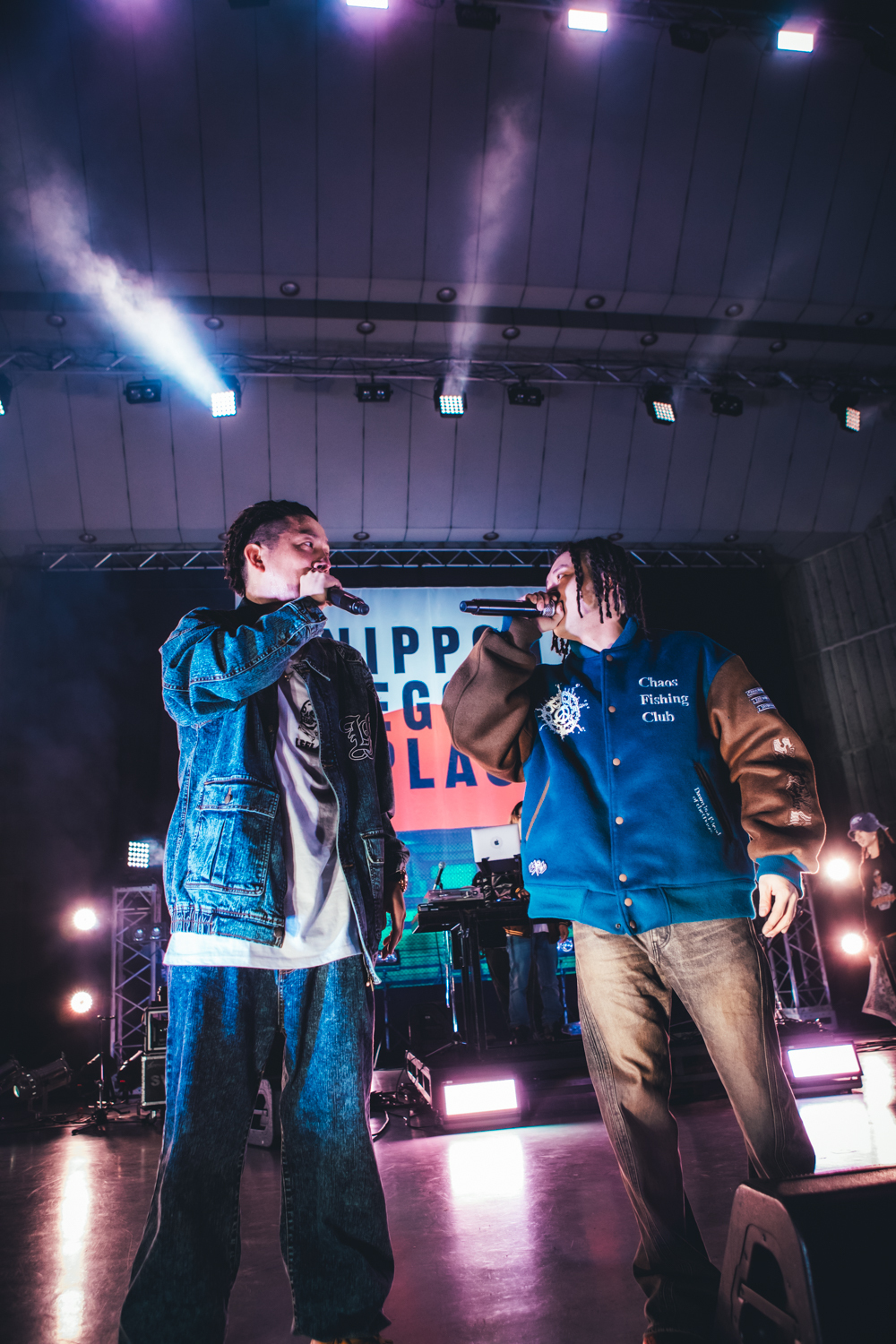 そして「誰が出てくるかわかってますよね? いろんな曲を作ってるけど、本邦初公開。LIFESTYLEとVIGORMANの未発表曲。ここで初めて披露したいんですけど、準備できてますか?」と呼びかけて始まった「BOVA」。マイクを手にしたVIGORMANが現れると巻き起こった大歓声。ステージ上を左右に移動しながら全エリアに届けた歌声が、観客の心に着々と火を灯していた。「もう1曲歌って、RAYくんを呼び込もうと思うんやけど。去年、Red Bullから連絡が来て、“64小節、ヴァースを蹴り続けてください”って。その動画はもう出てるんやけど、一発で64小節をキックし続けています。今日はその目で確かめてください」と言い、VIGORMANが披露した「Red Bull 64 Bars」は、生々しいエネルギーを放った。ビートを巧みに乗りこなしながら連射する言葉が圧巻だった。