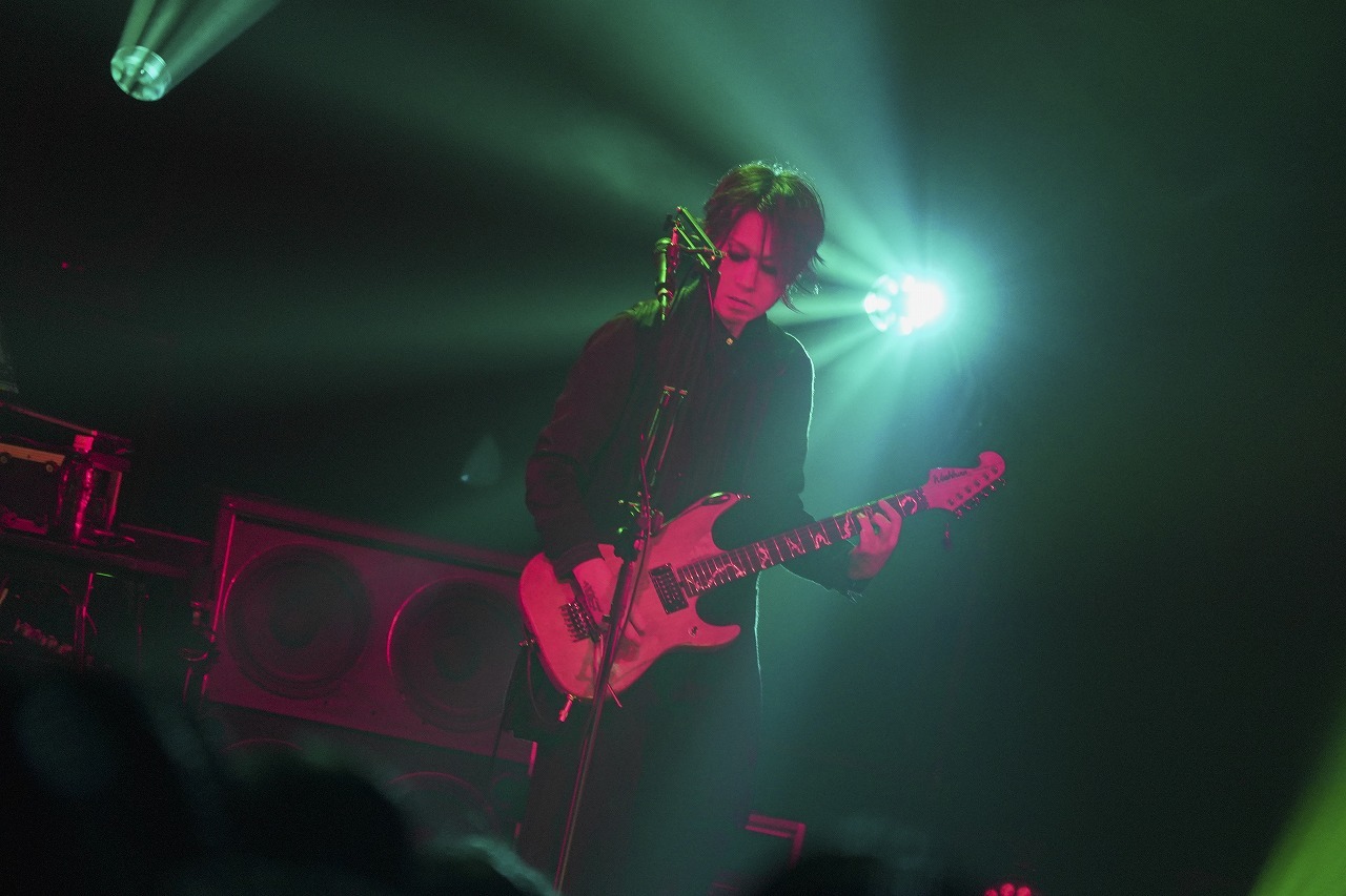 その後、モノクロのサイレントフィルムがインターミッションとして5分ほど上映されてから始まった第2部は、プラトゥリ流シューゲーチューンの「Thirteenth Friday」からスタート。わかりやすかったのは、竜太朗が1部とは全く異なる昨今スタイルのルックスにお色直しをしていた点と、彼がこの曲を筆頭にほとんどの場面でギター&ボーカルとしてのステージングを展開していた点で、感覚的には名画のリメイク作品を観たあとに同じ監督の最新作を観るのに近いところがこの第2部にはあったかもしれない。