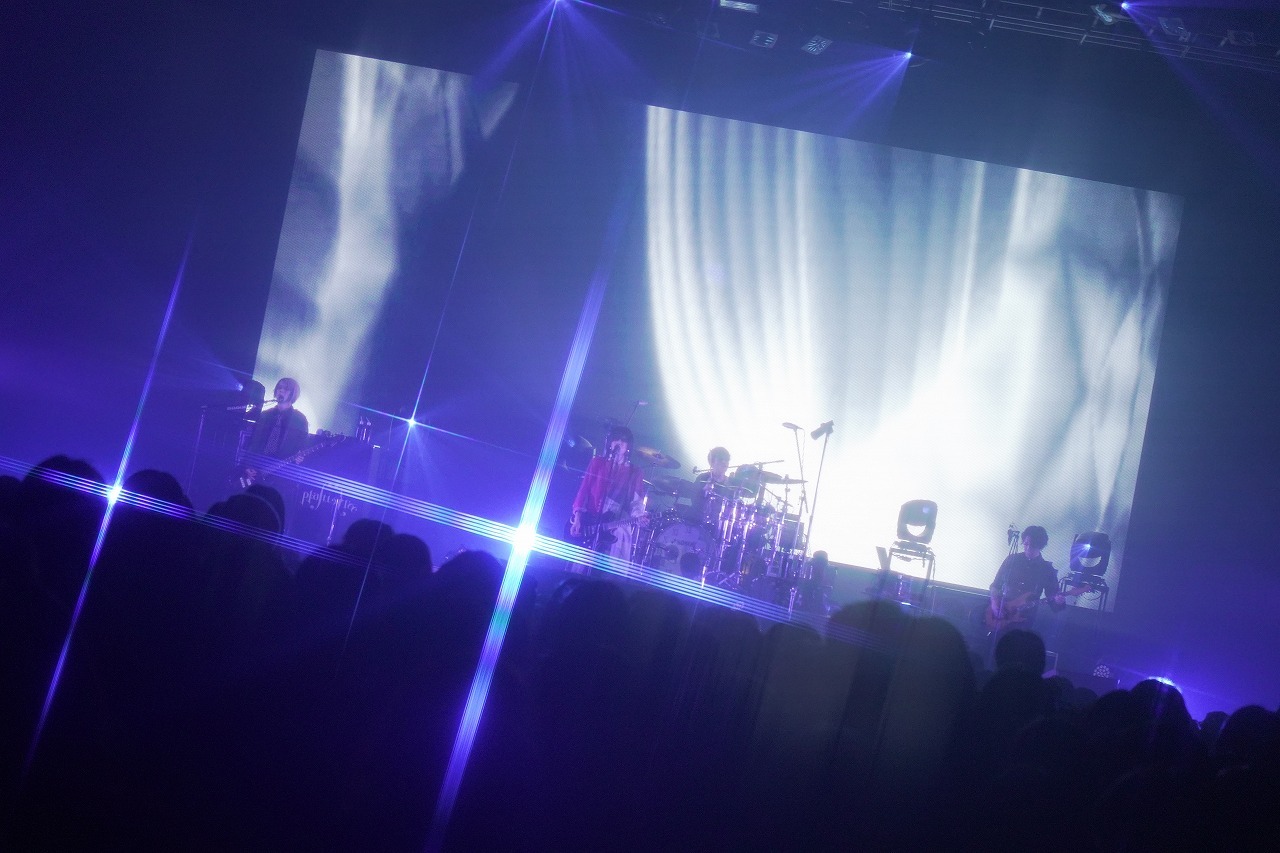 もちろん、見た目のみならずサウンドや歌の面でもPlastic Treeがこの場で表現してくれたのは、つまり“あの頃のようでいてあの頃よりも進化した”あれこれ。たとえば、ナカヤマアキラの奏でる繊細なトーンのギターフレーズから始まる「twice」に関しては、アレンジが2001年に発表されたベストアルバム『Cut ~Early Songs Best Selection~』に収録されていた「twice『Cut』ver.」に準拠していたようであったし、だいぶ久しぶりに演奏された気がする「銀の針」では、長谷川正の紡ぐベースラインをはじめとして当時よりもはるかにボトム部分が強化された音を堪能することができた。
