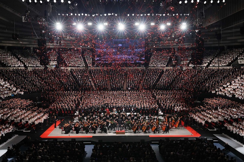 今年は「第九」初演から200年目という節目の年であり、「BIG LOVE ともに響きあう~What a Wonderful Symphony~」をテーマに開催。日本全国47都道府県より参加した6歳から98歳の1万人の合唱団が、力強い歌声とハーモニーを会場に響かせた。