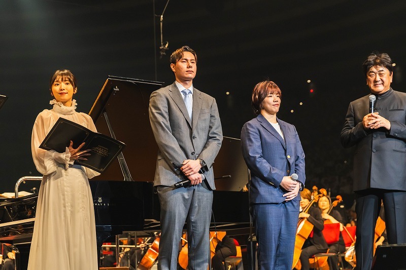 左から:松岡茉優、髙橋藍、鏡優翔、佐渡裕 (C)MBS/サントリー1万人の第九