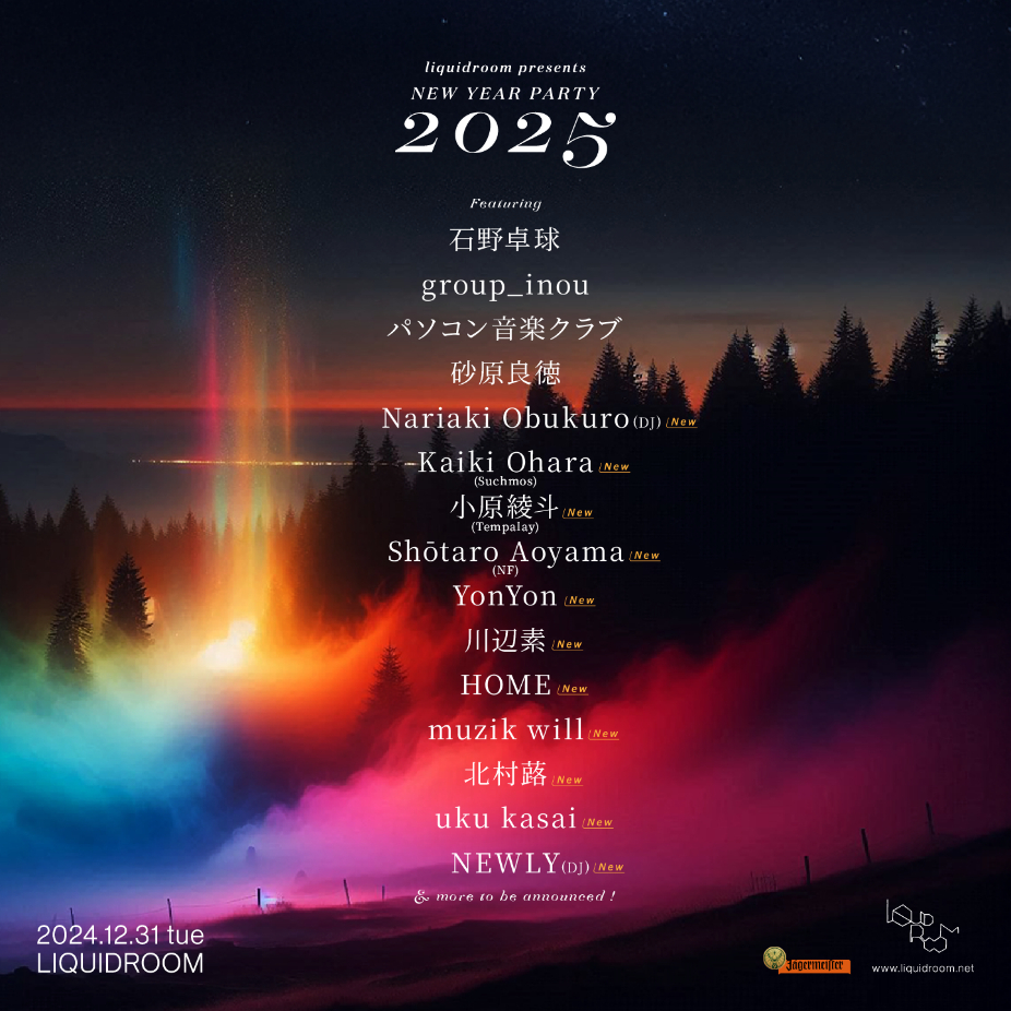 『liquidroom presents NEW YEAR PARTY 2025』は、毎年恒例となっているLIQUIDROOMのカウントダウンパーティー。これまでに、第1弾ラインナップとして、石野卓球、group_inou、パソコン音楽クラブ、砂原良徳が出演することが発表されていた。