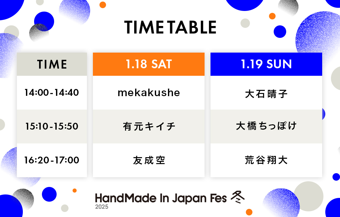 2025年1月18日(土)・19日(日)の2日間にわたり、東京・東京ビッグサイトで開催される『ハンドメイドインジャパンフェス冬(2025)』から、参加アーティストとタイムテーブルが発表された。