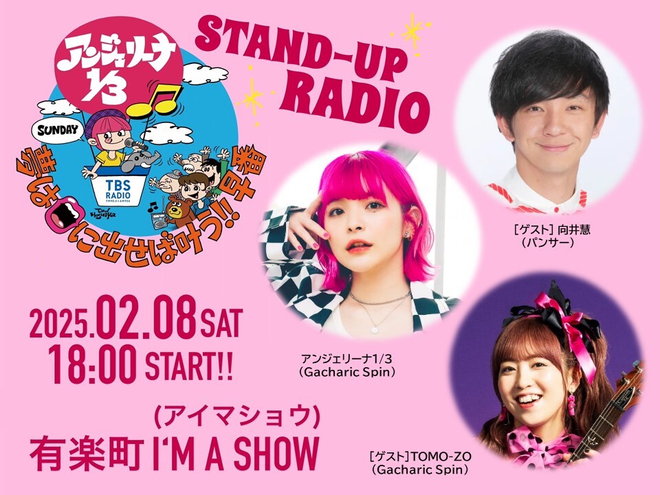 アンジェリーナ1/3(Gacharic Spin)のラジオ番組イベント『アンジェリーナ1/3 夢は口に出せば叶う!!STAND-UP RADIO(スタンダップレディオ)』が2025年2月8日(土)に東京・I’M A SHOWで開催されることがわかった。