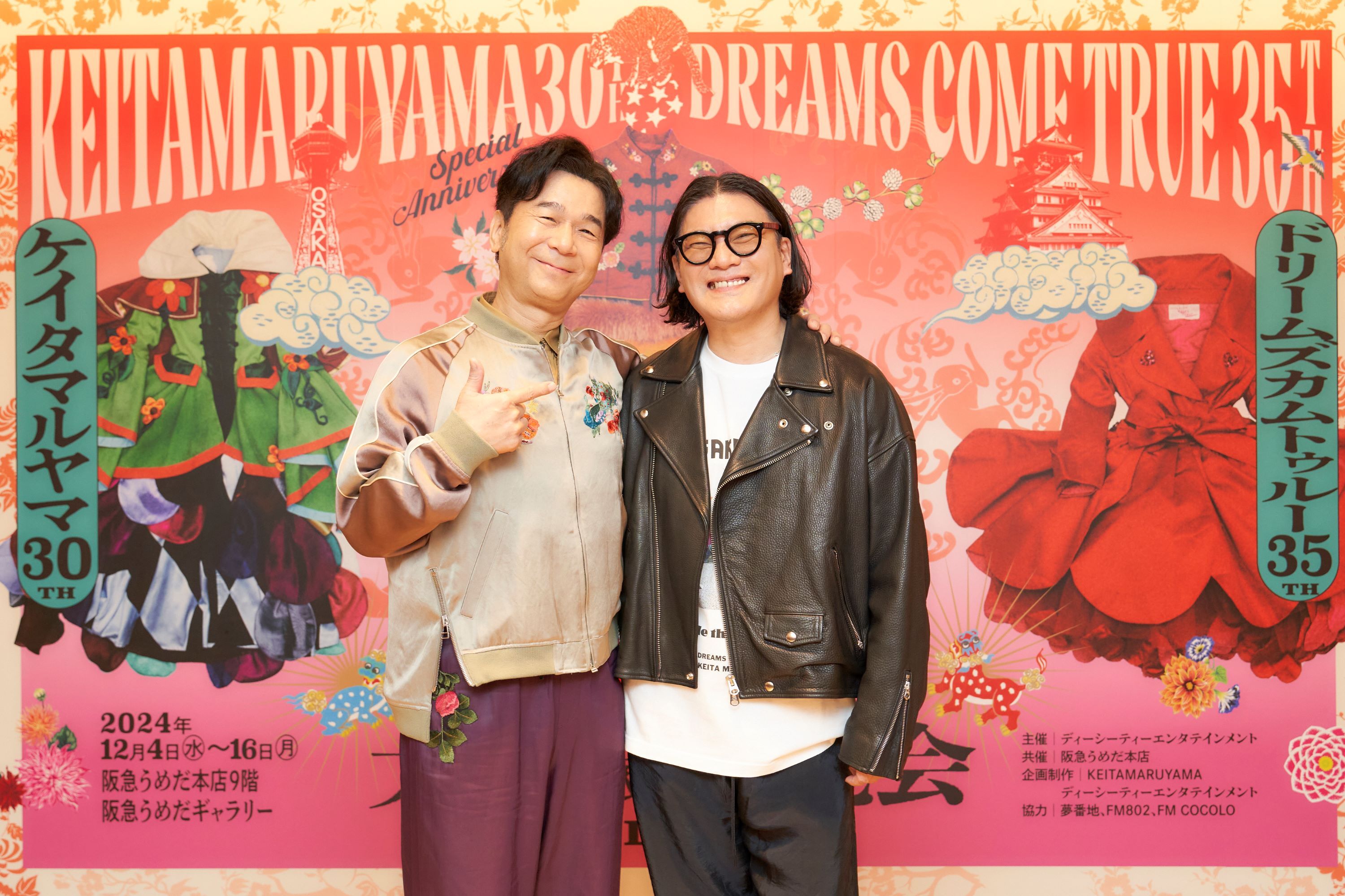 最後に、 KEITAMARUYAMA30周年、DREAMS COME TRUE35周年という節目を記念するこの最大規模の展覧会がスタートするにあたり、中村は「ほんとにこの奇跡を、まさに夢が叶った”DREAMS COME TRUE”というイベントを、できるだけたくさんの方に来ていただきたいと思います」とコメント。丸山は「長い年月の中で、数えきれないほど多くの方々が関わり、一つの作品として積み重ねてきた歴史と想いを、多くの方々に見ていただきたいと心から思っています。さらに、今回の展覧会は大阪でのみ開催される特別なイベントです。『大阪LOVER』という言葉を前面に押し出しながら、大阪愛を全国に広めていけたらと思っています」と一つひとつの衣装に宿る時代の空気感やドリカム、そしてファッションデザイナー丸山敬太の世界観を存分に味わえる本展覧会の意気込みを語り、イベントを締めくくった。