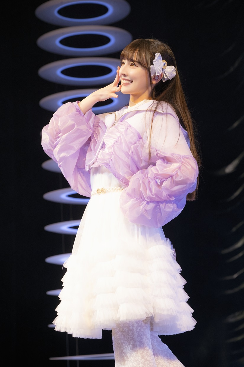 1st LIVEでのステージ衣装を身に纏い「人生は夢だらけ」を披露。会場に向けて“この人生は夢だらけ”と真っすぐ高らかに歌い上げる彼女の姿には、説得力すら感じた。