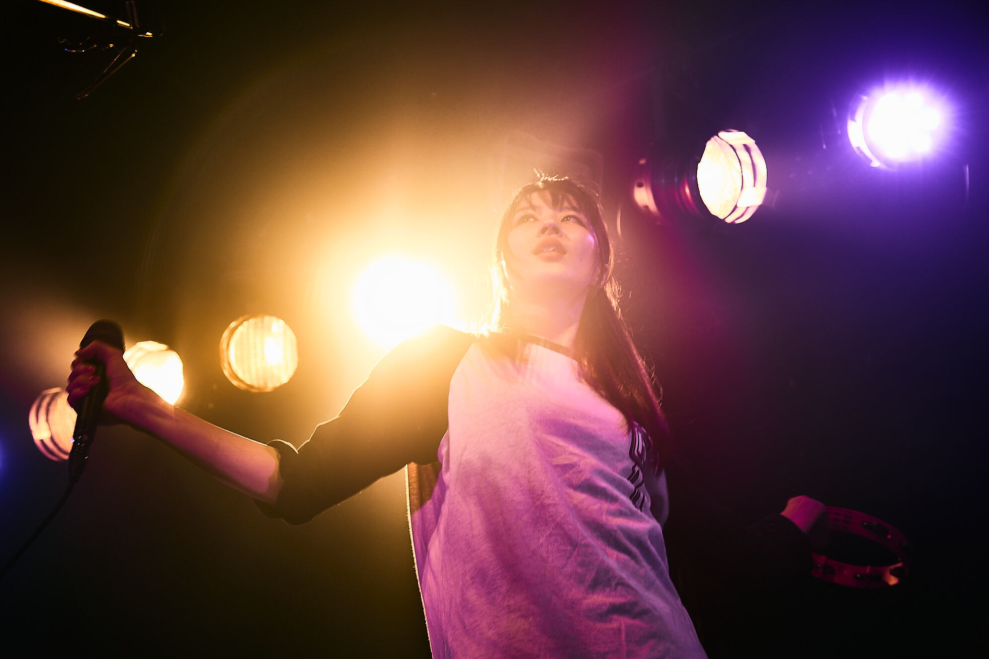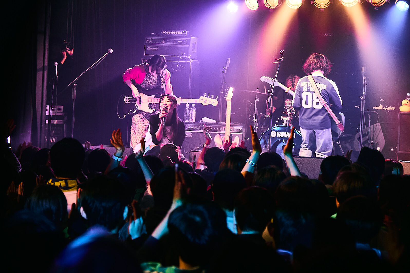 不実な恋人との別れが新たな出発になるという意味で「希望の歌だと思って聴いてほしい」と、その「あばよ、」を歌う前に語ったリコは、そこでも「(自分達の出番の)前と後ろに、どんなに素敵な音楽があろうともめっちゃ自信があると思って、この曲を歌います」と言葉に向こう意気を滲ませる。「あばよ、」はぺっぺ(Gt.Cho)による繊細なギター・プレイとハーモニーも聴きどころだった。