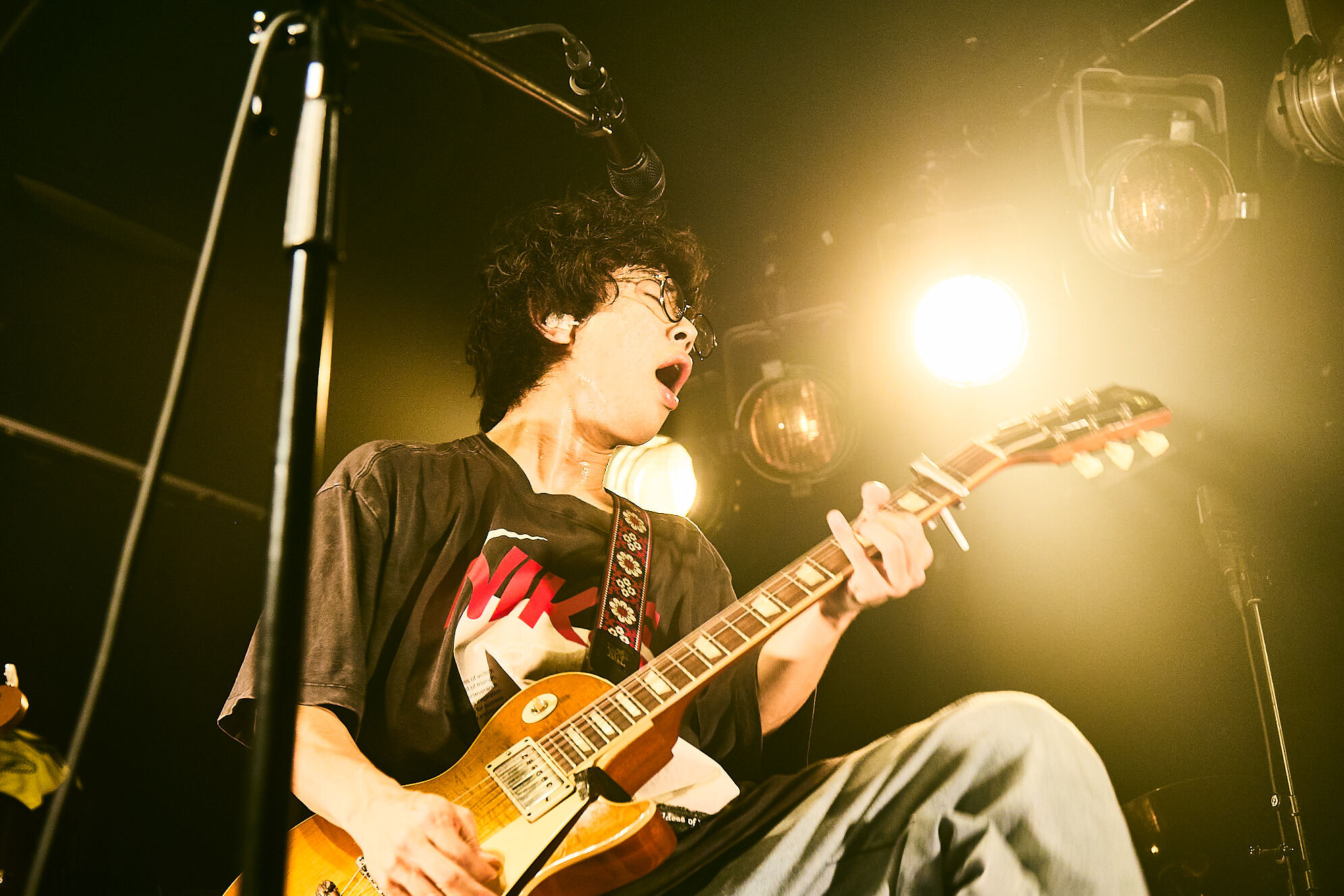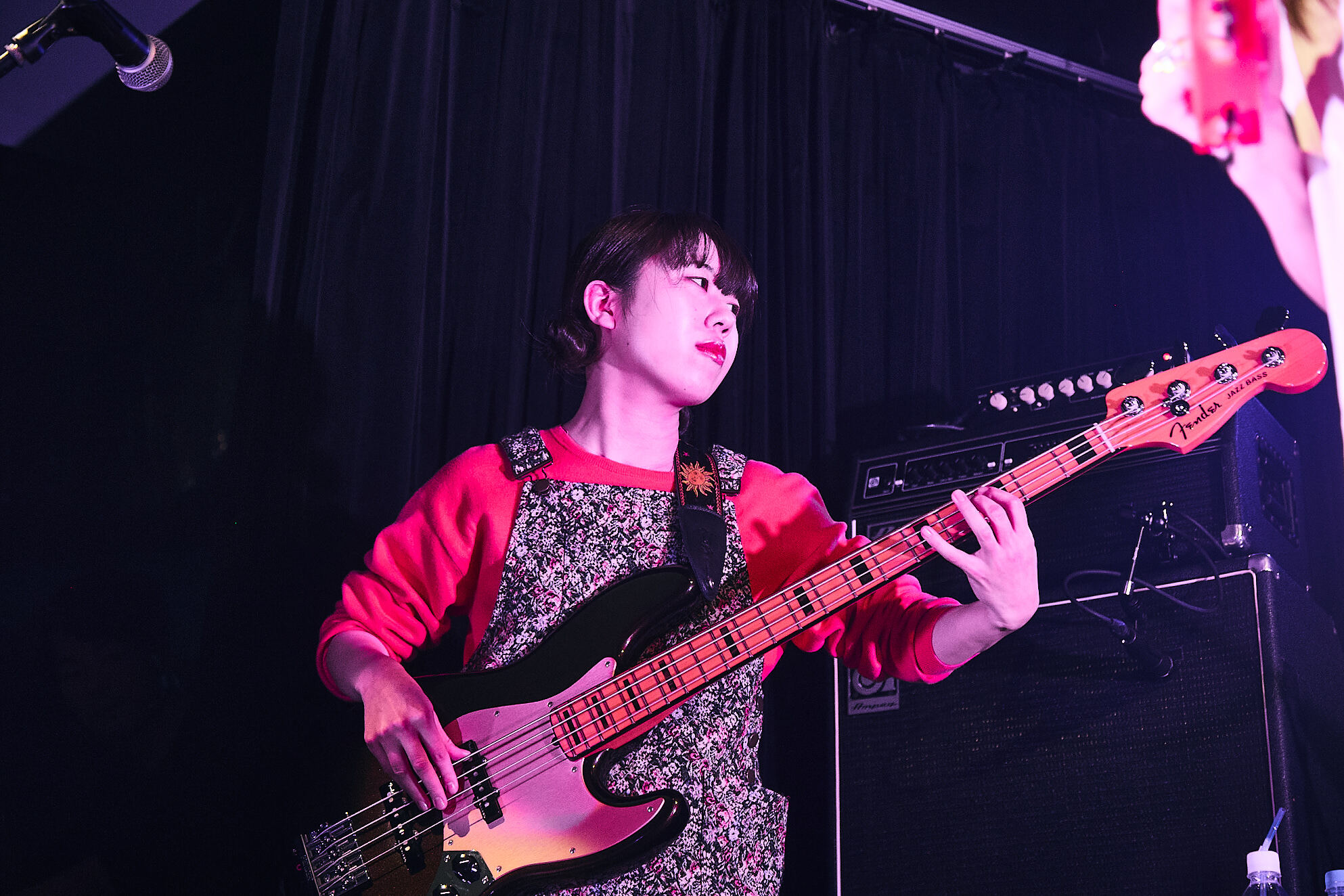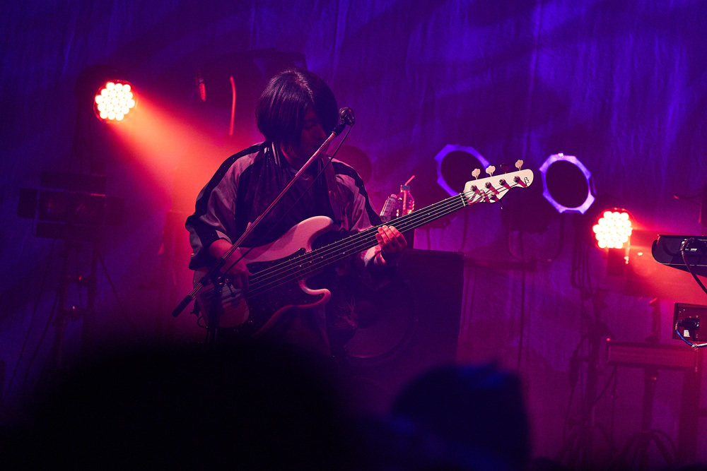 スタートダッシュをキメるように「渋谷!ファイ!ファイ!ファイ!」と木村浩大(Dr)が声を上げながら、「マジックアワー」から演奏になだれこむ。熱度満点の演奏でフロアの温度をぐっと上げると、藤森がソリッドな音色でコードをかき鳴らしながら、間髪入れずに「幼気な少女」に繋げ、早速、観客にシンガロングの声を上げさせる。そこにノンストップで繋げたのが、森野光晴(Ba)のスラップ奏法が映えるオルタナ・ファンキーな「ぱらぱらり」。