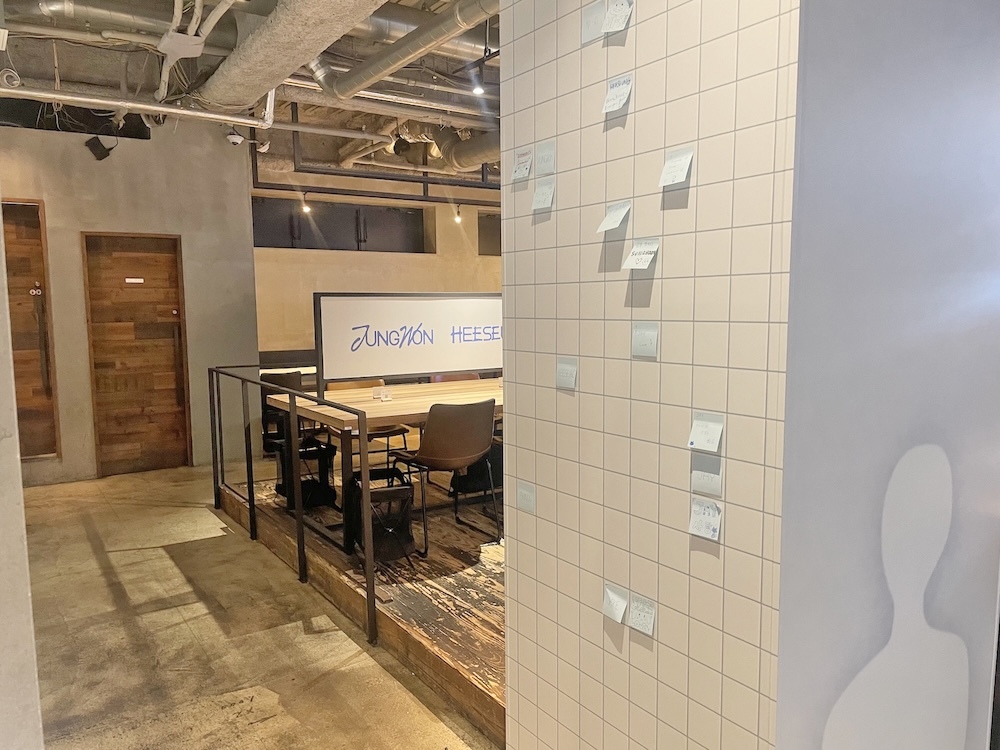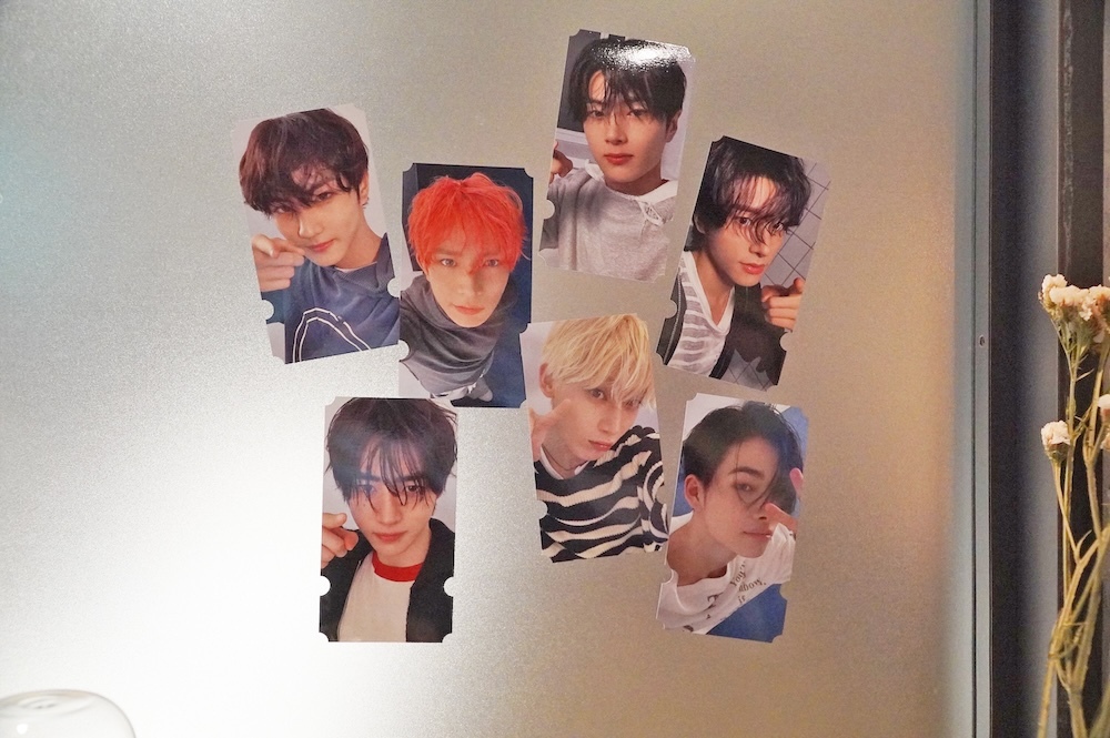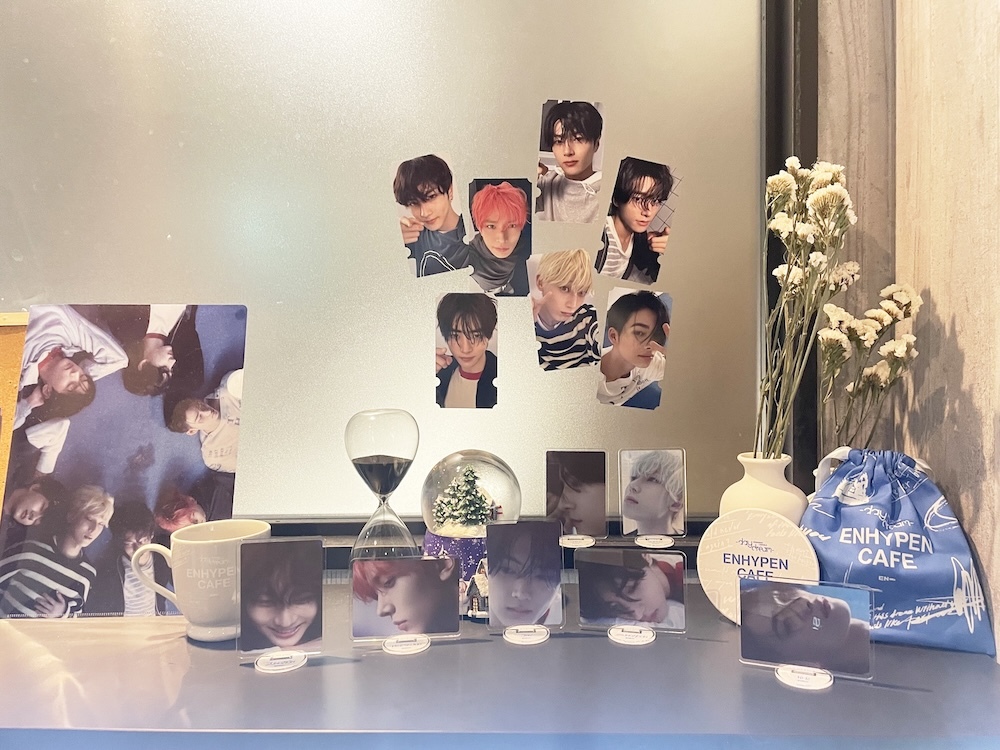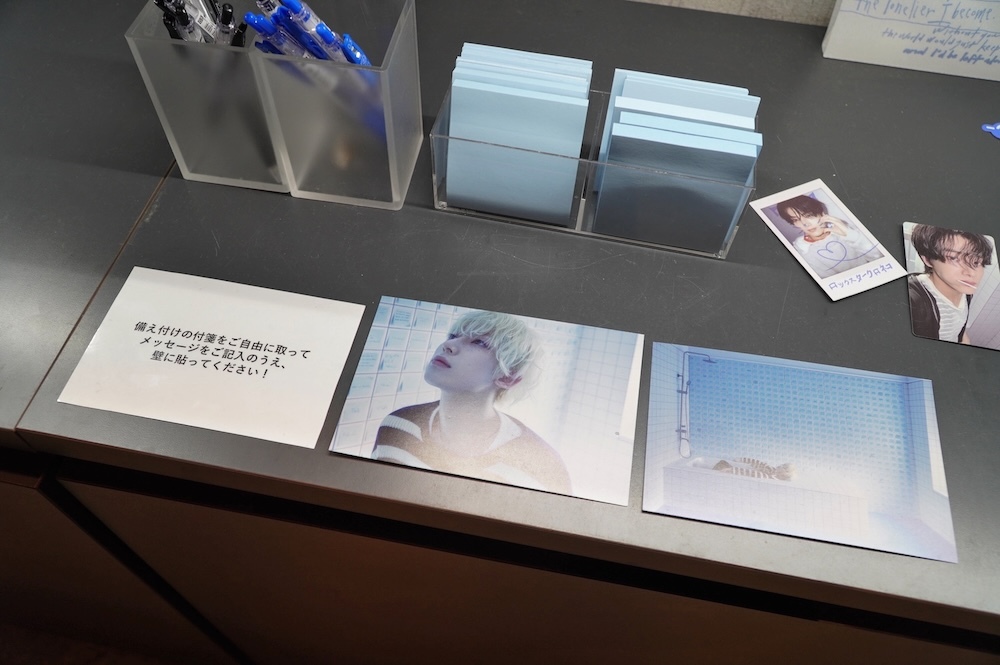 さらに、体験型の企画も用意されている。『ROMANCE : UNTOLD -daydream-』のコンセプトフォトの中に、壁のタイルに付箋が貼られているシーンが描かれているものがあるが、今回のカフェではENHYPENへのメッセージを書いて壁に貼るコーナーとして再現されている。