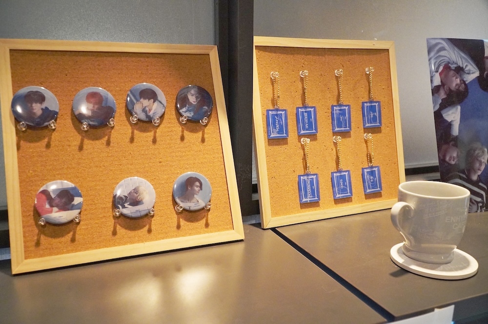 店内入口付近には物販エリアも設置されていて、ENGENEのために特別に用意されたオリジナルアイテムが魅力的に展開されている。グッズには最新アルバムのコンセプトフォトを活用しており、ENHYPENならではのコンセプトを感じることができるのに加え、日常的に活用できる豊富なアイテムが揃っている。