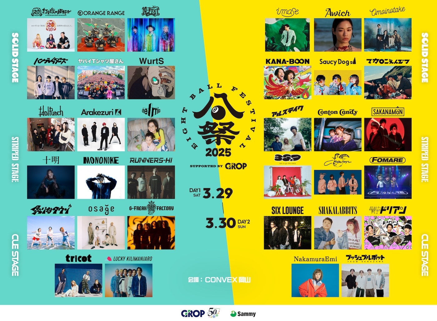 2025年3月29日・30日の2日間、岡山県岡山市にあるCONVEX岡山にて『EIGHT BALL FESTIVAL 2025 supported by GROP』が開催される。