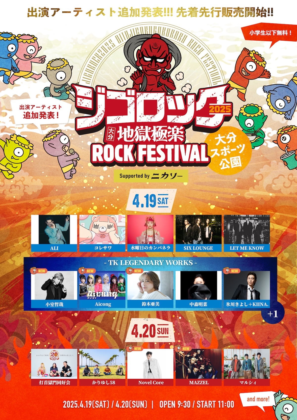 2025年4月19日(土)・20日(日)に大分スポーツ公園で開催される『ジゴロック 2025 ~大分“地獄極楽”ROCK FESTIVAL~ supported by ニカソー』の追加出演アーティストが発表された。