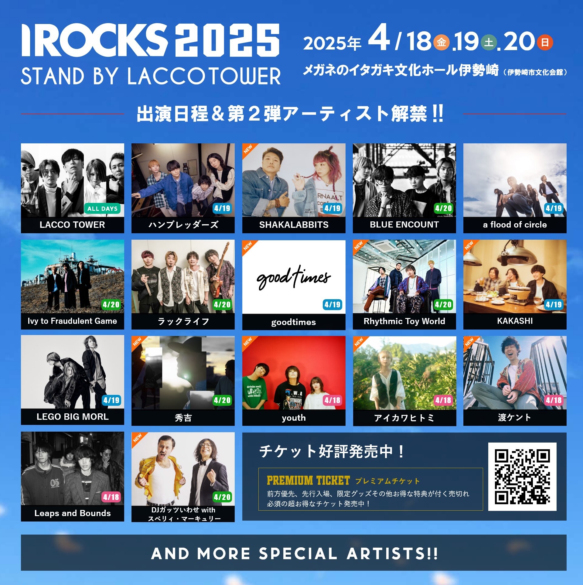 2025年4月18日(金)・19日(土)・20日(日)にメガネのイタガキ文化ホール伊勢崎で開催されるLACCO TOWER主催のロックフェス『I ROCKS 2025 stand by LACCO TOWER』の第二弾出演アーティストおよび日割りが発表された。