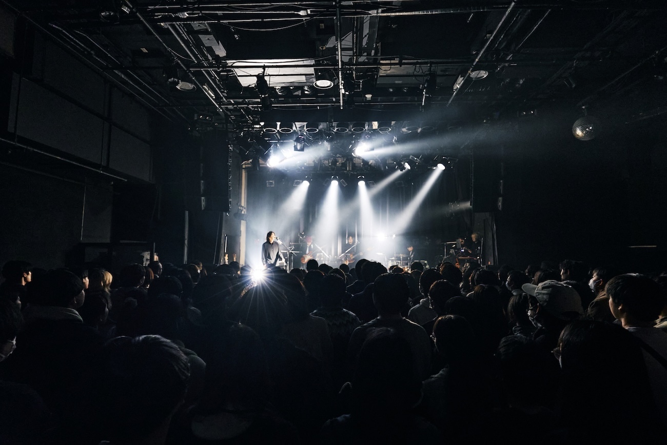 ライブは、アルバムの冒頭に収録されているポエトリー「東京」からスタート。スポットライトの下、澤田が言葉を紡いでいると、〈愛している。〉という言葉をきっかけにバンドメンバーが音を鳴らし始めた。そして次の曲「遺書」へ。光を背負ったバンドメンバーによる、晴れやかなサウンドとともに澤田は歌い始めた。「遺書」は昨年12月にリリースされた澤田のメジャーデビュー曲で、彼の価値観を形作った相手との別れと未来が描かれている。しかしこの1曲で何かが完結したわけではない。育てすぎて幻と化した恋をしがみ続けながら、そんな自分に苦笑したり情けなさをさらけ出したりしながら、澤田はこの1年曲を作ってきた。その複雑な心模様の吐露する澤田のボーカルに感情が込められると、バンドメンバーもドラマティックな演奏でそれに応じる。観客は静かに集中し、ステージから届けられる歌を心で受け止めていた。アーティスト澤田 空海理の歩みに想いを馳せていた人もいれば、音楽に自分だけの記憶を重ね、堪らない気持ちになっていた人もいただろう。