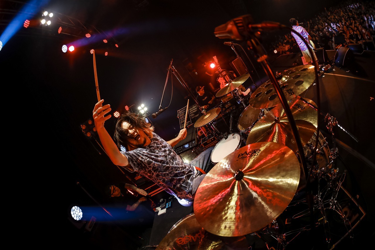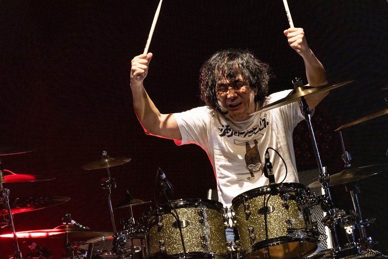 マーシーと小林勝(Ba, Cho)が高速でリズムを刻みながら、ドラムソロに繋げ、オー、オー、イエー、イエーのコール&レスポンスで客席をぐっと盛り上げる。