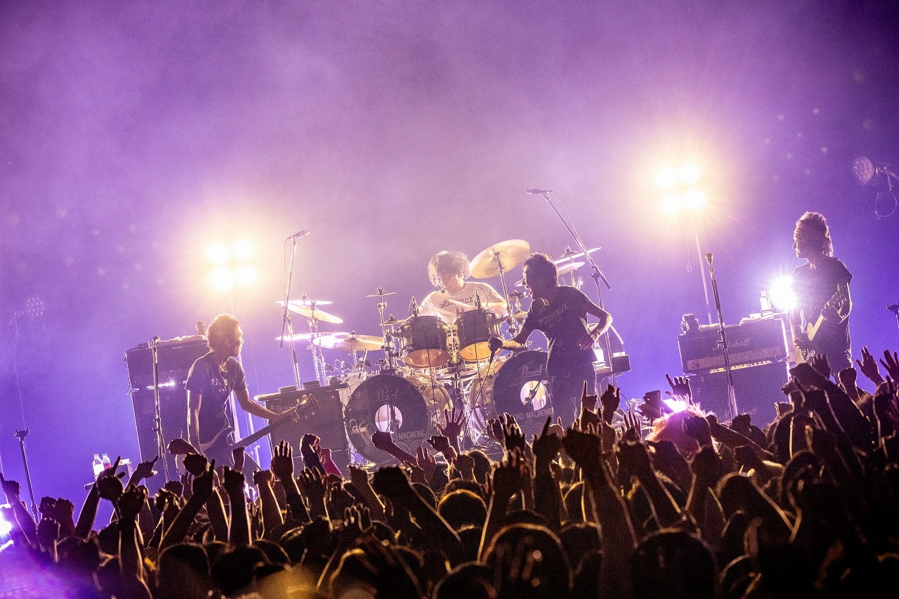 桐田が立ち上がって、踊りながら観客にアピールしてみせた「雷雨決行」は、《引き返す訳にゃいかないぜ 夢がオレたちを見張ってる》という歌詞のパンチラインとタイトルがロックンロールに人生を賭けたバンドマンの覚悟を思わせ、聴いているこちらも思わず胸が熱くなる。