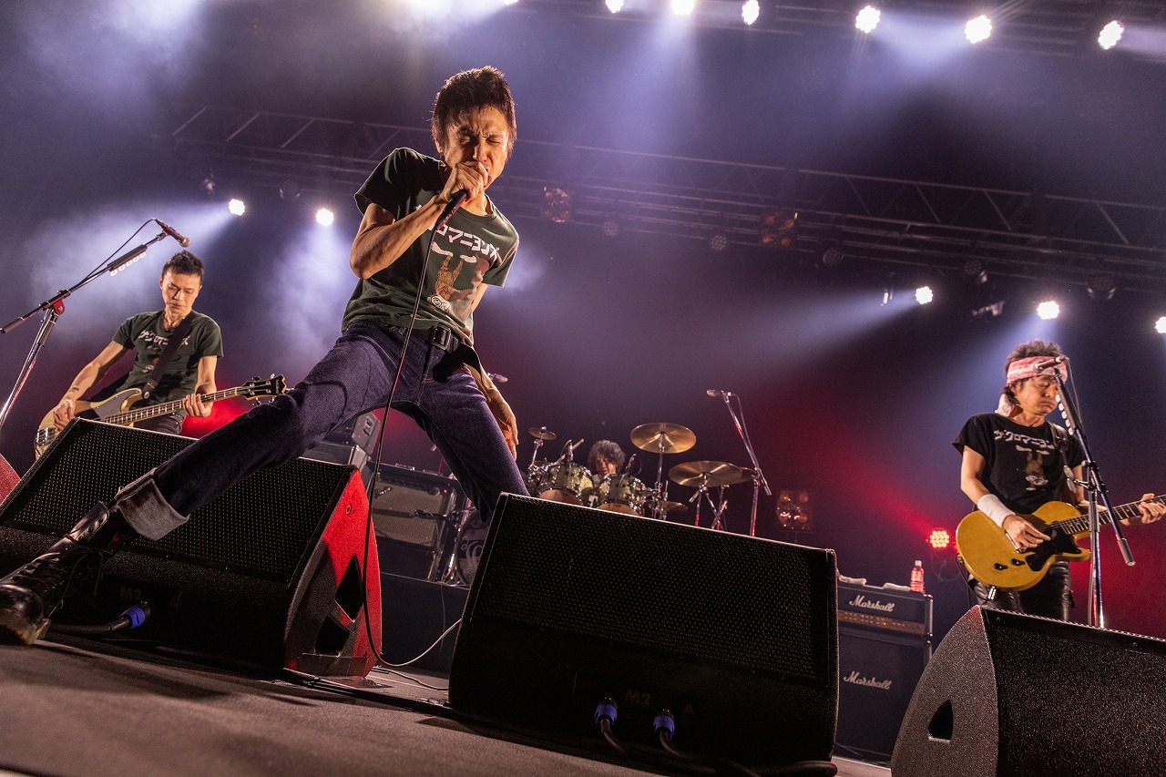 ヒロトのタイトルコールに声を上げた観客がヒロトのハーモニカのブローに応え、オイ! オイ! オイ! オイ! と声を上げる。いつも以上に《ただ生きる 生きてやる 呼吸を止めてなるものか》という「エイトビート」の歌詞が響くのは、“生きろ!”と必死に訴えかけたサンボマスターの後だからか。小林がランニングベースを閃かせ、ハーモニカを鳴らすヒロトの後ろで3人が向かい合い、エンディングを迎えると、そこからはもうあっという間だった。