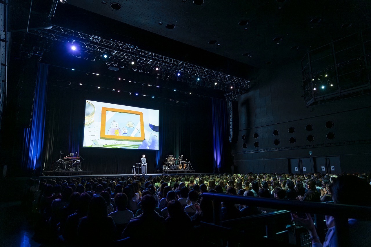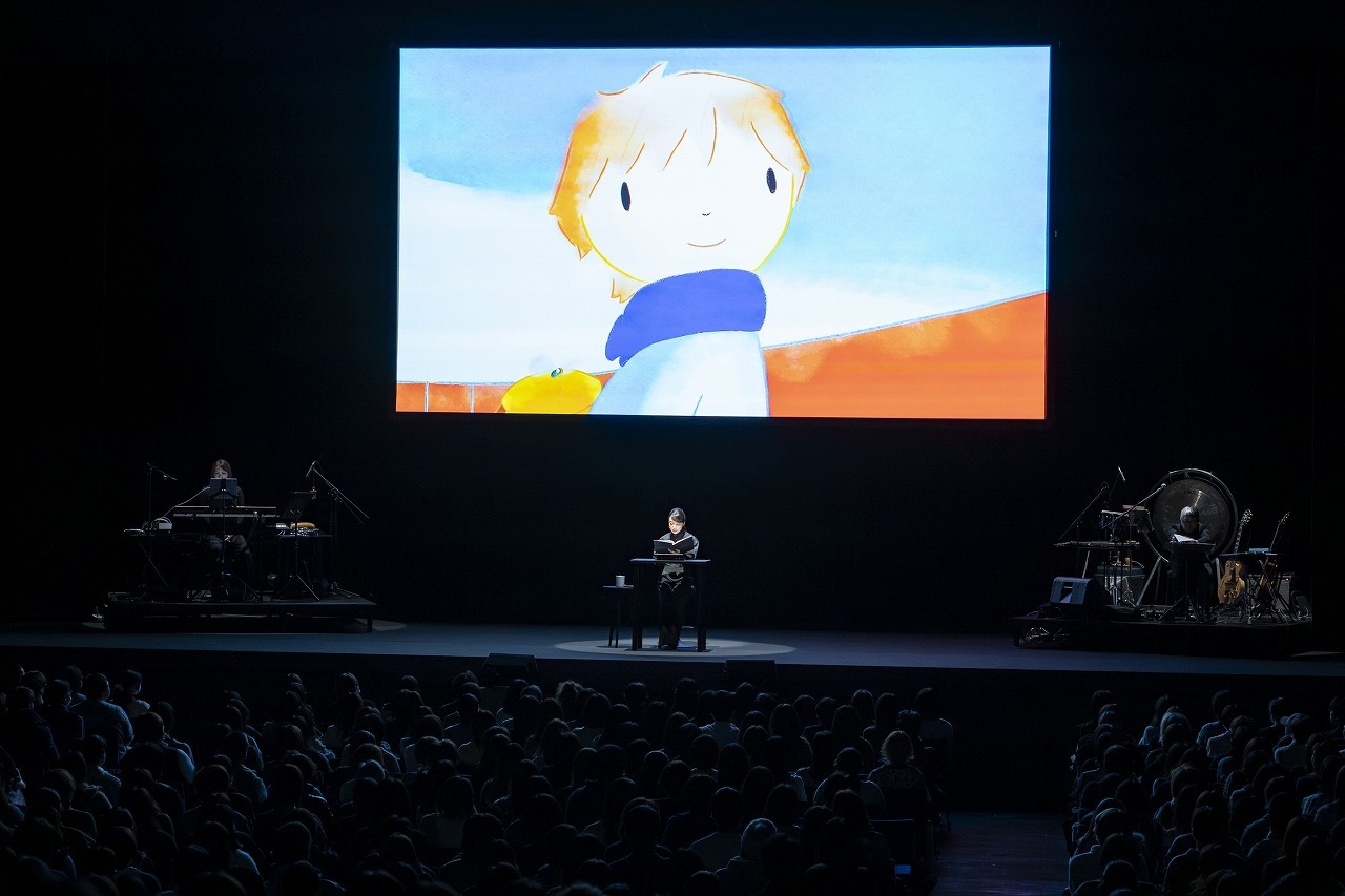 公演は、ライトが落とされた会場に鼓動音が鳴り響き、大嶋と栗山による「メメント・モリ」(インストゥルメンタル)の生演奏で開幕。ステージ上のスクリーンに本作の主人公・ボクのイラストが映し出されると、曲に合わせて会場から自然と手拍子が湧き起こる。上白石の朗読への期待感がひしひしと伝わる雰囲気だ。