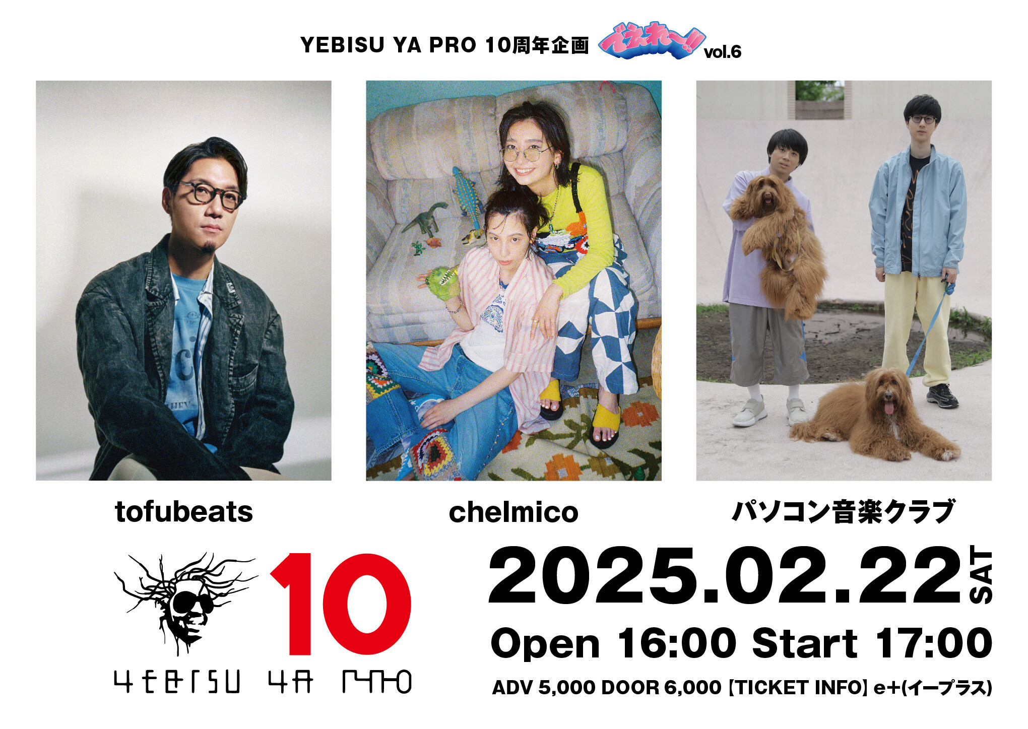 2025年2月22日(土)に、岡山のライブハウス・YEBISU YA PROで人気イベント『でえれ〜!! vol.6』の開催が決定。tofubeats、chelmico、パソコン音楽クラブの出演が発表された。