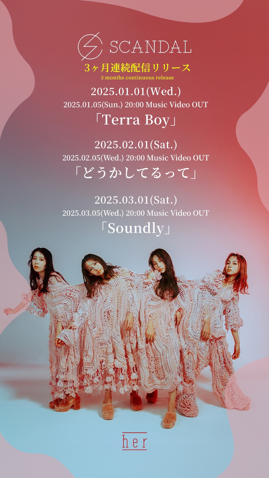1月1日(水)に「Terra Boy」・2月1日(土)に「どうかしてるって」・3月1日(土)に「Soundly」と、毎月1日にリリースされる。