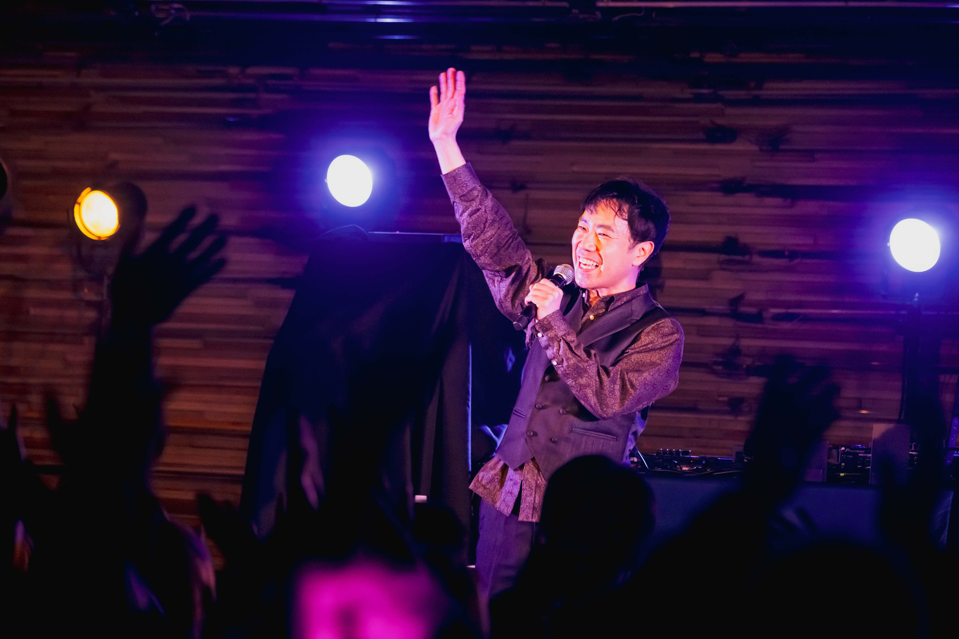 その後も軽快なダンスときらめくネオンと共に「OH MY JULIET!」を届け、「こんばんは藤井隆です。今日は『SHAKE』に呼んでいただいて、皆さんが温かく迎えてくださって本当にうれしいです!」と感謝を述べ、メロウでアンニュイな「わたしの青い空」~ダンサブルで華やかな「未確認飛行体」と、色とりどりの楽曲群で華麗に魅せていく。